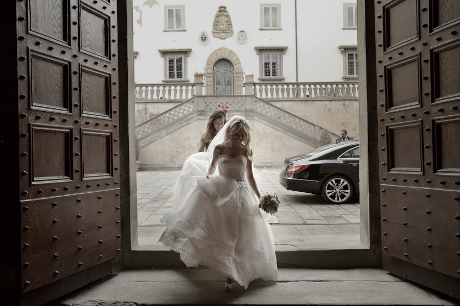 Abito. Sempre più difficile trovarne di nuovi e originali, ma credo che alla fine sul gusto non si discuta. Se lo hai scelto e ti piace allora è bello. Un suggerimento invece che riguarda la parte fotografica. Quell’abito che voi spose indossate e che certamente, nella maggior parte dei casi, avete pagato forse più dell’intero servizio fotografico, lo porterete quella volta sola. Non ci saranno altre occasioni – salvo qualche rara eccezione – di metterselo nuovamente. Quindi, capisco che debba arrivare intonso alla cerimonia, ma dopo godetevelo, non abbiate più paura di sporcarlo, lasciatelo strusciare in terra mentre camminate, giocate con il velo, pensate a divertirvi. Voi vi sentirete più a vostro agio e le fotografie ne trarranno sicuramente vantaggio.