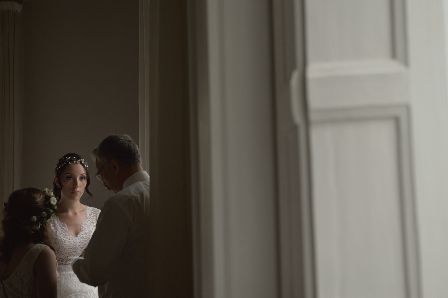 Sempre per restare in tema Chiesa, voglio soffermarmi sui baci e abbracci a fine cerimonia. Nei matrimoni di tradizione anglosassone gli sposi dopo le firme escono per primi e si fermano in fondo al corridoio centrale sia questo di una chiesa o di una location esterna. A quel punto ogni invitato in fila si ferma a salutare e a congratularsi con gli sposi. Lo so noi siamo italiani e non ci piacciano le code e devo dire che questa cosa molto inglese per certi aspetti la trovo troppo formale anche io. Però spesso si assiste a delle scene inspiegabili. Gli invitati assalgono gli sposi già dentro la chiesa per poi, non si capisce perché, ripetere i baci e gli abbracci fuori dalla chiesa, per poi ribaciare e riabbracciare appena arrivati al ricevimento. Non dico che non si debba fare ci mancherebbe, però spesso queste manifestazioni ripetute d’affetto durano anche un’ora dopo la fine della cerimonia e talvolta i tempi che noi fotografi abbiamo per fare qualche esterno – se richiesto – si assottigliano sempre di più. Quindi a meno che non vi sposiate alle 3 di un pomeriggio di giugno (ma mi è capitato comunque di fare gli esterni alle 19,30 e anche di corsa perché alle 20 era prevista la cena) cercate di limitare temporalmente la fase di baci e abbracci alla fine della cerimonia tanto poi dall’aperitivo alla cena al dopocena ci saranno tante altre occasioni per farlo.
