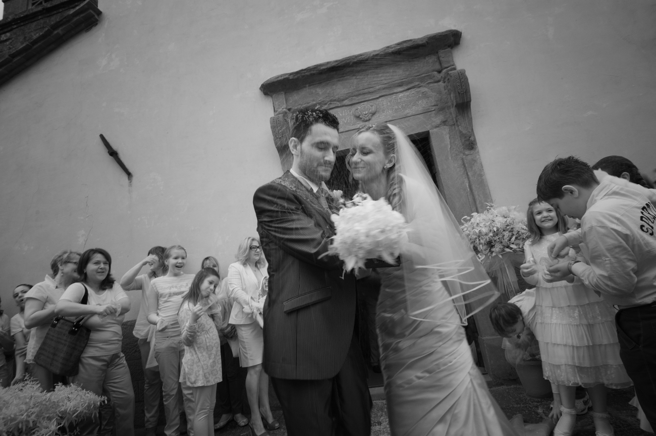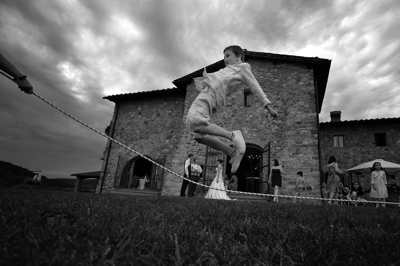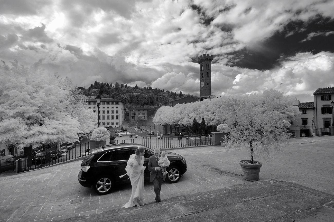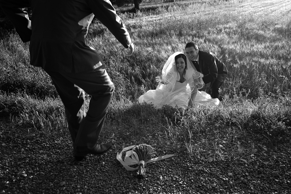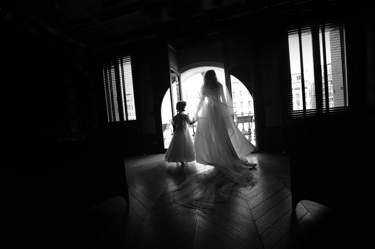 Ma veniamo al Reportage. E’ una parola francese che significa “riportare” nel senso di “raccontare”. Quindi quando si fa del reportage si deve raccontare qualcosa. Nello specifico si deve descrivere con le immagini tutte le fasi che caratterizzano il matrimonio (inteso come evento): preparazione, cerimonia, ambienti esterni, ricevimento, festa. C’è chi dice che nel reportage non si possono fotografare né dettagli né paesaggi, ma dove sta scritto. E’ ovvio che questo genere di fotografia deve innanzitutto riportare emozioni, cogliere attimi, raccontare situazioni, ma li deve anche ambientare. Per fare ciò è necessario contestualizzare l’evento e quindi il paesaggio entra con prepotenza nella fotografia. Il dettaglio poi, è un’altra parte integrante del reportage. Non le mani incrociate con gli anelli in primo piano e magari un faretto che li illumina creando un controluce (nella moda va benone), ma una lacrima, un pugno di un bambino che stringe il riso, un abbraccio, un vestito strappato. Insomma una Fotografia “aperta” (nei miei workshop approfondisco molto questo aspetto) che lascia a colui che “legge” l’andare oltre, uno scatto che anticipa o è conseguenza di un accadimento.