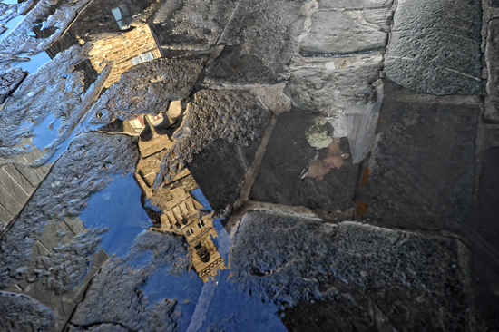 Riflesso di Palazzo Vecchio nel lastricato della Galleria degli Uffizi - Wedding in Florence