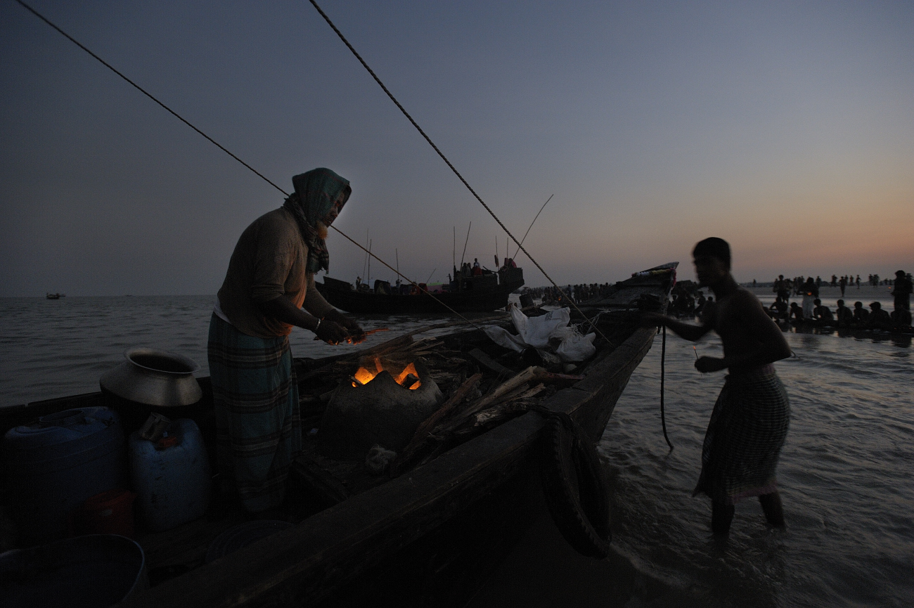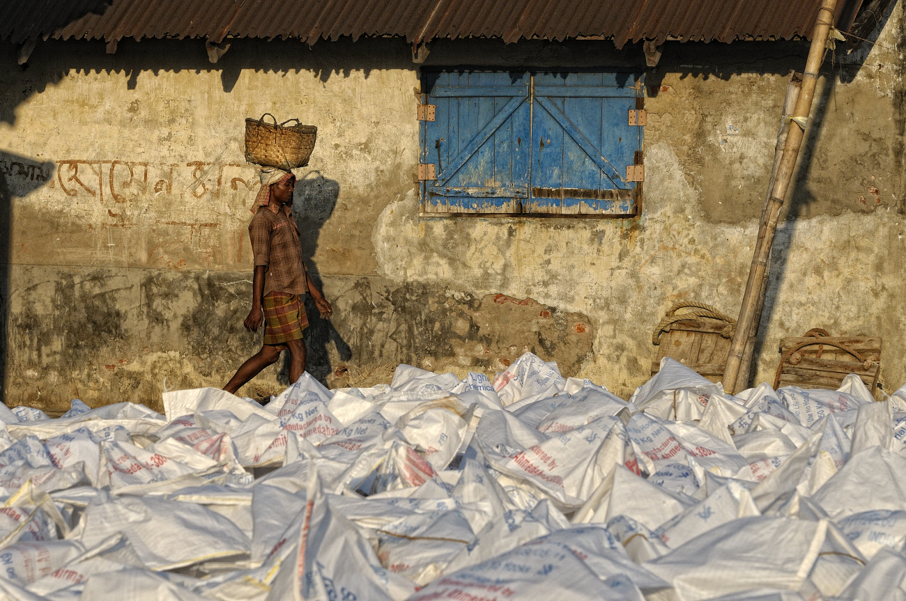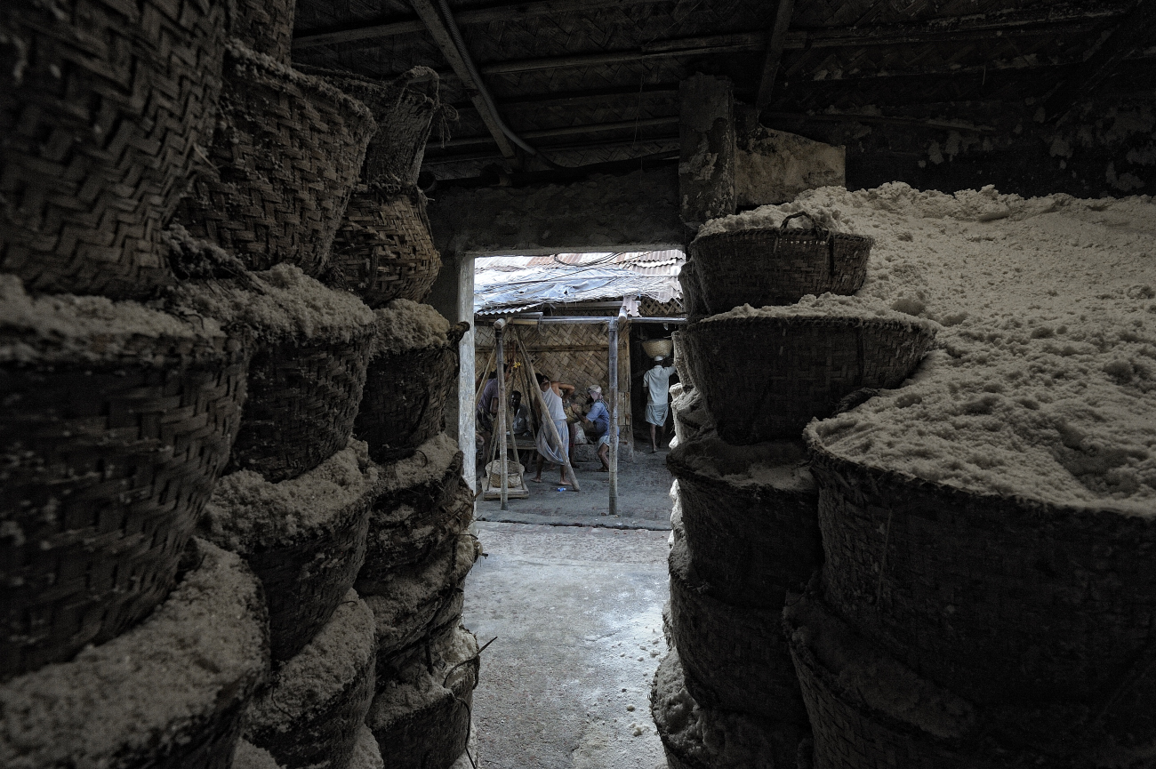 E che dire delle saline di Chittagong dove ci siamo ritrovati catapultati in un mondo per noi lontano nei secoli. Uomini che scaricavano il sale misto a terra da delle improbabili barche simili a vecchi vascelli dei pirati. Un via vai di persone con questi cesti in testa che portavano il sale in angusti magazzini dove la luce naturale filtrava da piccole feritoie ricavate sui tetti. Qui, immersi nell’acqua, si portavano avanti i processi di filtraggio e stoccaggio di questa sorta di oro bianco. Un’esperienza affascinante, vissuta nel momento magico del tramonto, quando la luce calda del tardo pomeriggio indorava gli scrostati e fatiscenti muri dei magazzini e faceva brillare le lucide pelli bronzate dei portatori.