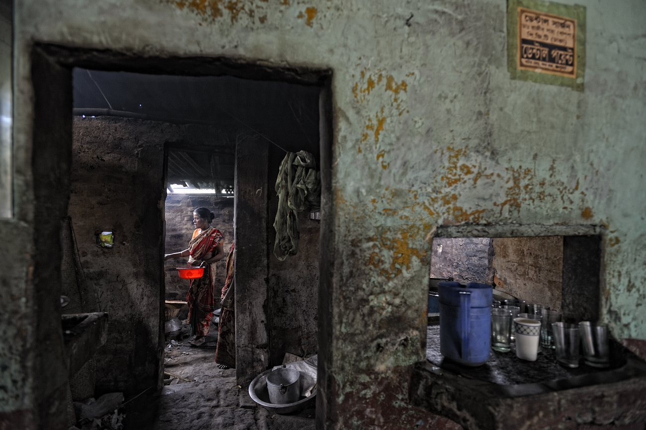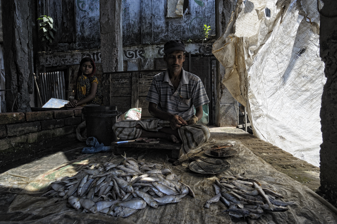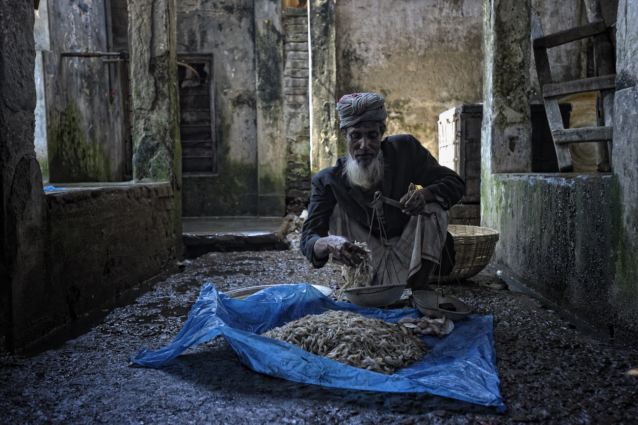 E che dire delle saline di Chittagong dove ci siamo ritrovati catapultati in un mondo per noi lontano nei secoli. Uomini che scaricavano il sale misto a terra da delle improbabili barche simili a vecchi vascelli dei pirati. Un via vai di persone con questi cesti in testa che portavano il sale in angusti magazzini dove la luce naturale filtrava da piccole feritoie ricavate sui tetti. Qui, immersi nell’acqua, si portavano avanti i processi di filtraggio e stoccaggio di questa sorta di oro bianco. Un’esperienza affascinante, vissuta nel momento magico del tramonto, quando la luce calda del tardo pomeriggio indorava gli scrostati e fatiscenti muri dei magazzini e faceva brillare le lucide pelli bronzate dei portatori.
