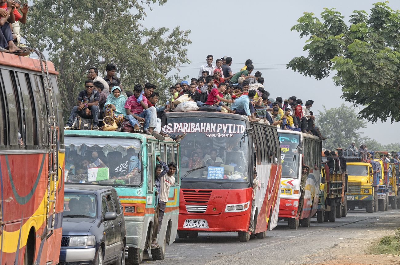 Il primo impatto è forte, quasi violento. Usciti dall’aeroporto centinaia di uomini, donne e bambini aggrappati a una cancellata, filtro tra il gate e la strada, aspettano l’arrivo dei loro cari, magari facenti ritorno proprio dall’Italia dove molti immigrati bengalesi lavorano. L’istinto mi fa prendere immediatamente la macchina fotografica dallo zaino e, certo di essere assalito da urla e grida di ‘non farlo’, inizio a scattare. Vale la pena rischiare. Con mia totale sorpresa non accade niente; un poliziotto è nella ‘traiettoria’ del mio zoom, ecco mi farà abbassare la macchina fotografica, anche questa volta non accade niente. Ma come? Sono in un paese musulmano, sto fotografando all’aeroporto uomini dalla barba lunga e donne velate, un poliziotto mi sta guardando e nessuno dice di fermarmi?