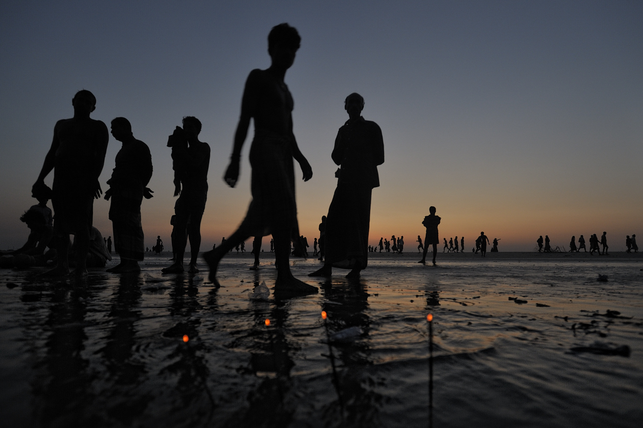 E’ solo il primo giorno, ma quelli che seguiranno non faranno altro che confermare anzi per certi aspetti accentuare, quelli elementi che sono emersi dall’impatto iniziale: totale disponibilità della gente e caos inverosimile. Un viaggio dove non ci sono delle classiche attrazioni turistiche salvo alcuni siti archeologici del passato prima induista e poi moghul piuttosto miseri, ma niente più. Le sistemazioni pur essendo le migliori disponibili sono comunque molto sotto gli standard occidentali e anche il cibo è abbastanza monotono. Però quello che il paese offre in termini di real life è forse una delle esperienze in assoluto più belle del mio aver viaggiato. Ho condiviso con i miei compagni delle situazioni uniche e incredibili. Il Raash Mela – la festa induista del perdono e dell’amicizia – dove al mattino prima del sorgere del sole migliaia di pellegrini hanno pregato sulle rive del fiume Gange – che in Bangladesh diventa Podda – accendendo incensi e recitando intime preghiere in una sorta di lodi mattutine. Abbiamo visto uomini abbracciarsi e piangere, donne offrire doni a Rama, bambini correre a dare calci a un pallone. Ci siamo immersi con loro nelle calde acque del fiume condividendo la gioia – noi dal punto di vista fotografico – del loro tuffo purificatore.