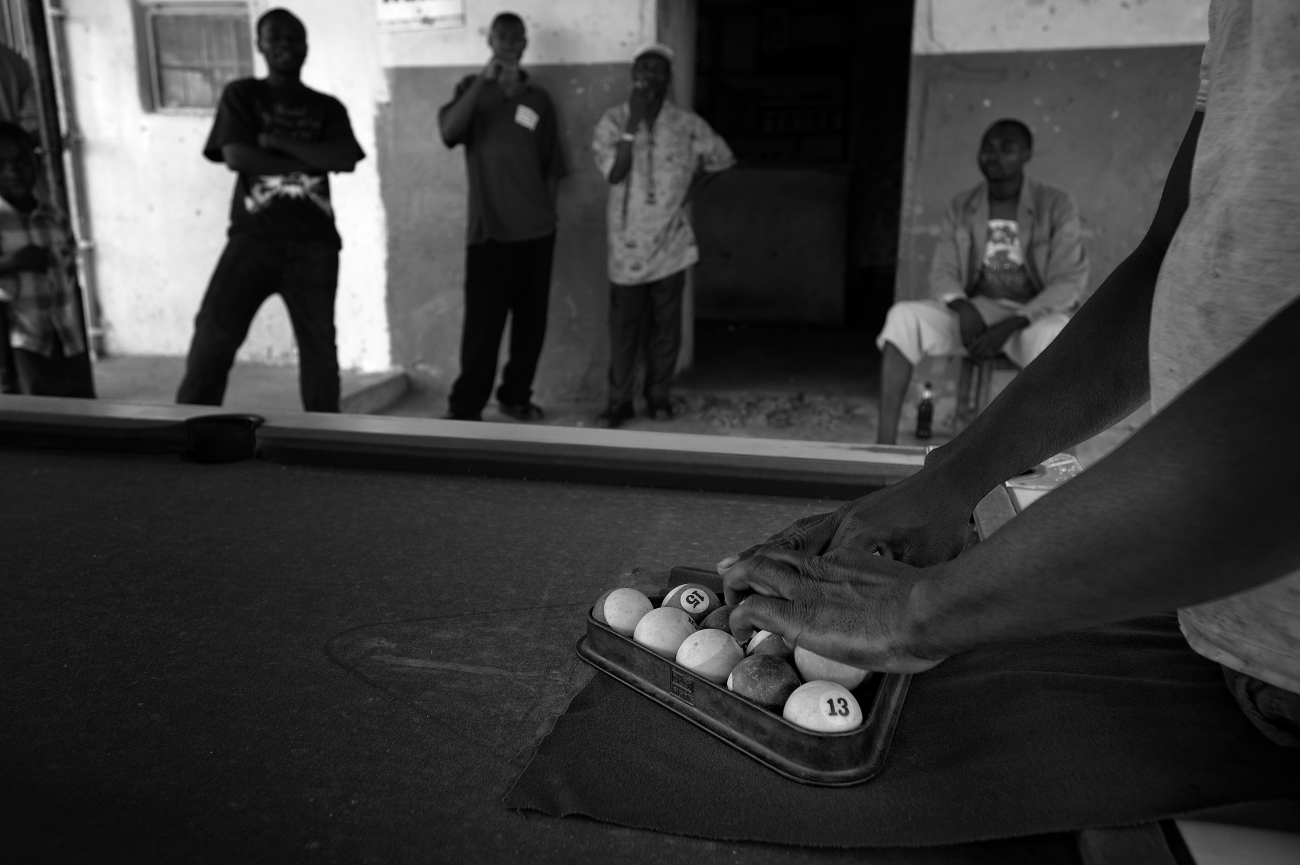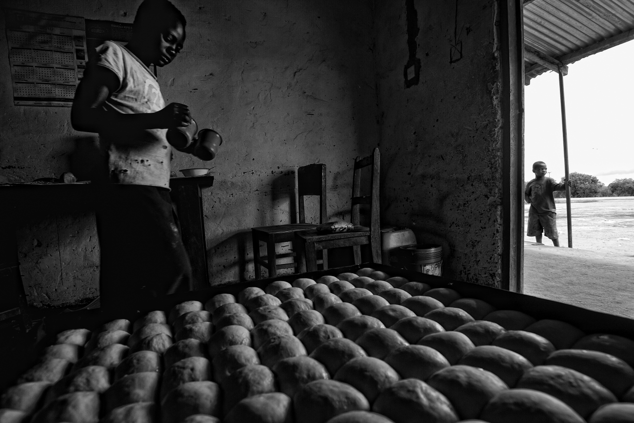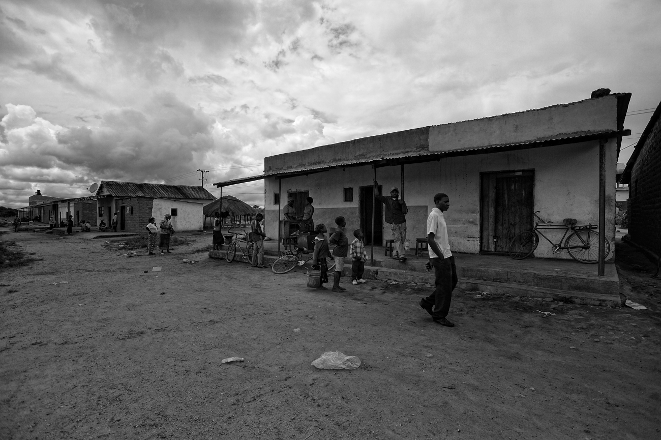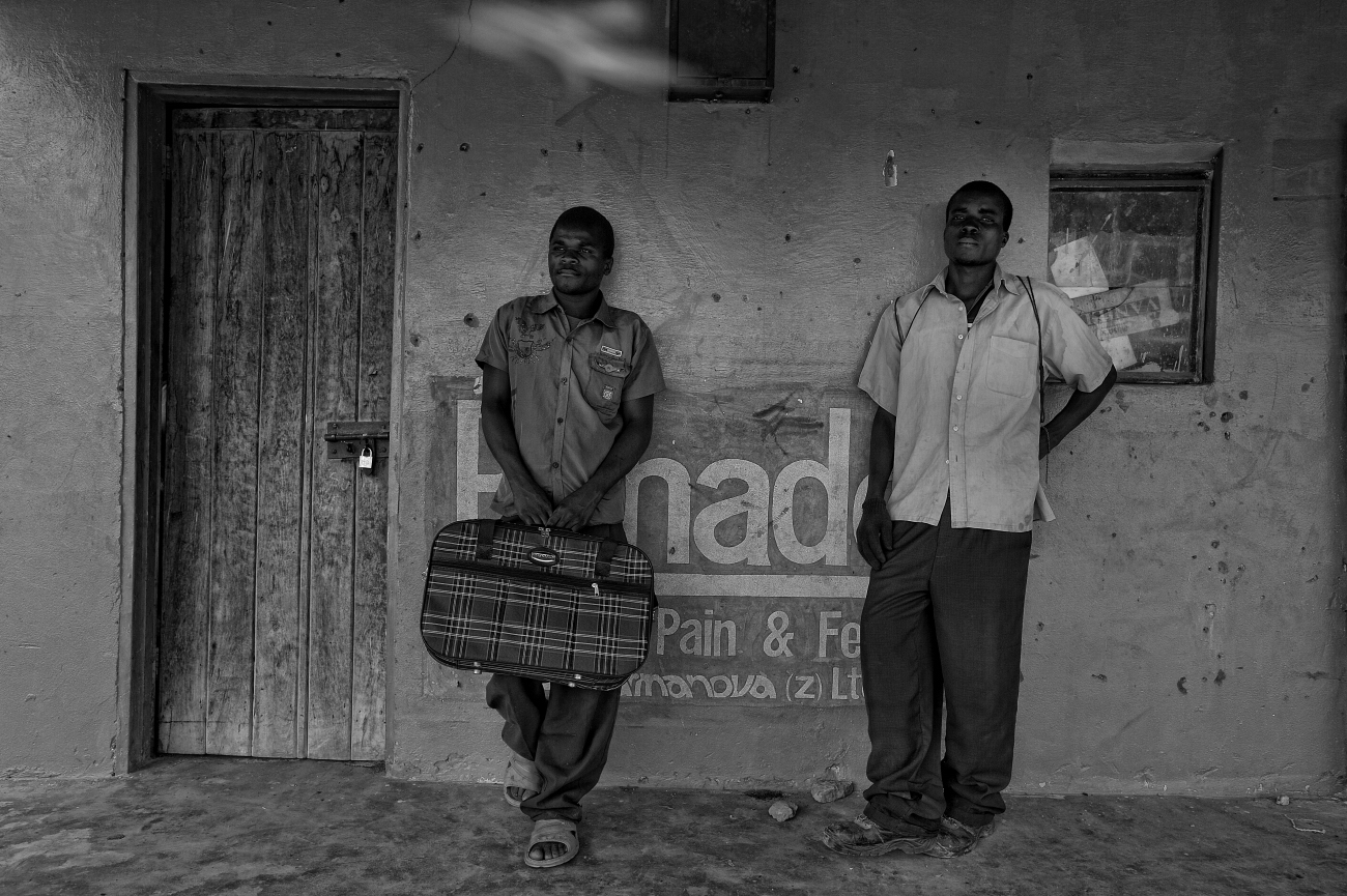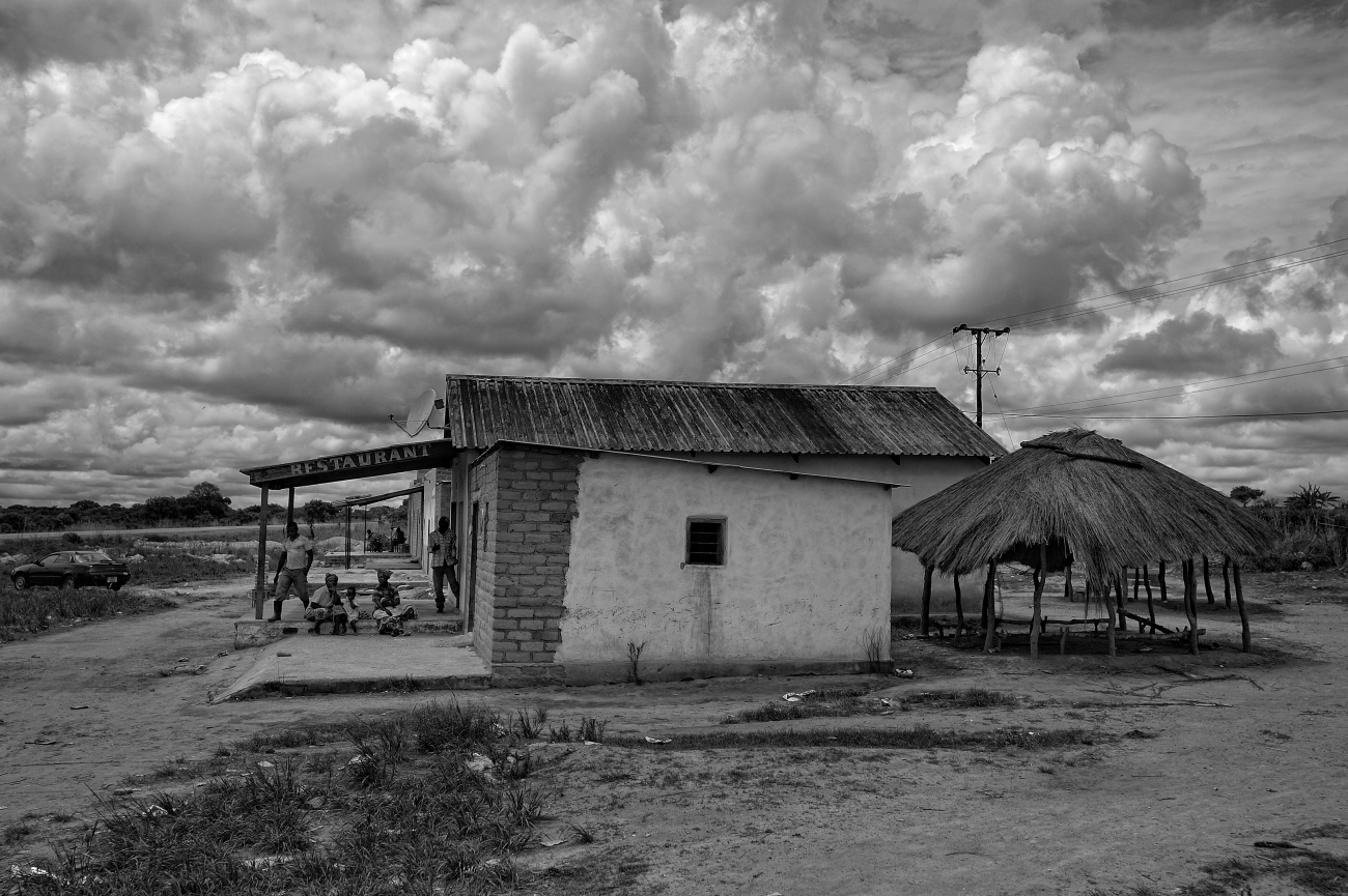 Mununga, nel cuore dello Zambia e quindi al centro della cosiddetta Africa nera, è un agglomerato di pochi edifici come lo sono la maggior parte dei villaggi che s’incontrano appena usciti da Lusaka. C’è il negozio che vende bibite, il bar con il biliardo, la musica assordante con i bassi esasperati, i panni stesi, i muri scrostati, i colori accesi delle pubblicità delle compagnie telefoniche e poi giovani ubriachi, chi aspetta la corriera, bambini ridanciani, ragazze particolari, vecchi fumatori, uomini vestiti in modo improbabile e la donna che inforna il pane. A questo punto parte il primo dei cinquanta minuti in cui inizio a fotografare e tutto accade e prende vita.