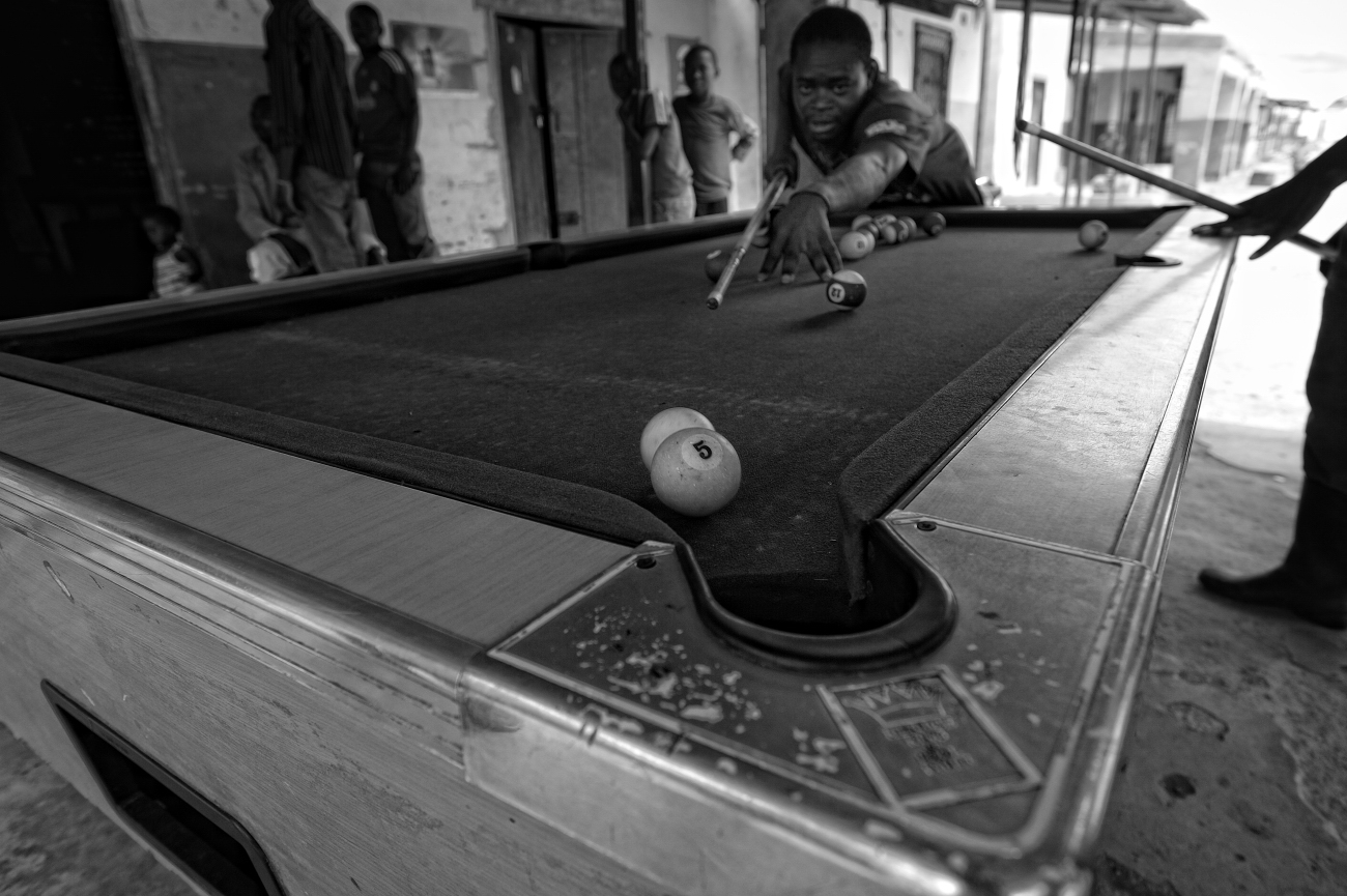 A pochi metri il suono delle palle da biliardo che corrono su un logoro panno verde indirizza la mia attenzione. Giovani seduti con una bottiglia di birra in mano passano il tempo a guardare due loro coetanei che cercano con colpi molto casuali di buttare le palle stesse in buca. Chi fuma una sigaretta, chi aspetta il bus con una valigia in mano diretto chissà dove, chi si affaccia per curiosare, chi guarda le macchine passare. Sono le 10,45 del mattino.
