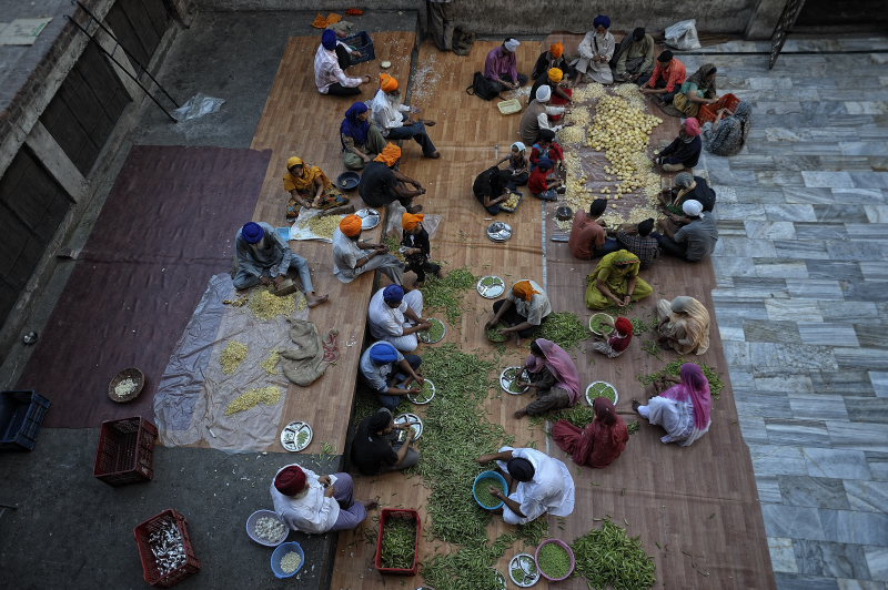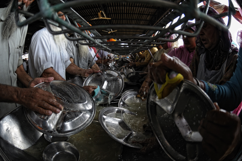 Uno dei doveri di un bravo discepolo è quello di andare a purificarsi nelle acque del ‘Tempio’. Tra i più importanti luoghi di culti dell’India ci sono: il Golden Temple di Amritsar e il Takhat Keshgarh ad Anandpur Sahib. Mentre il Tempio d’Oro di Amritsar è frequentato per tutto l’anno e accoglie mediamente circa 20.000 pellegrini al giorno il Tempio di Takhat Keshgarh si anima solo in occasione del Festival di Holla Mohalla che cade attorno al primo plenilunio di marzo. La cittadina, poco più di un villaggio con poche migliaia di persone per 360 giorni l’anno, si popola di centinaia di migliaia di devoti Sikh provenienti da tutte le parti dell’India e non solo. Essi vengono accolti in grandi dormitori, elemento comune a ogni tempio. Gli viene offerto da mangiare e da bere. E tutta la gestione dell’accoglienza viene fatta da volontari: gli stessi pellegrini che a turno prestano il loro servizio alla comunità.