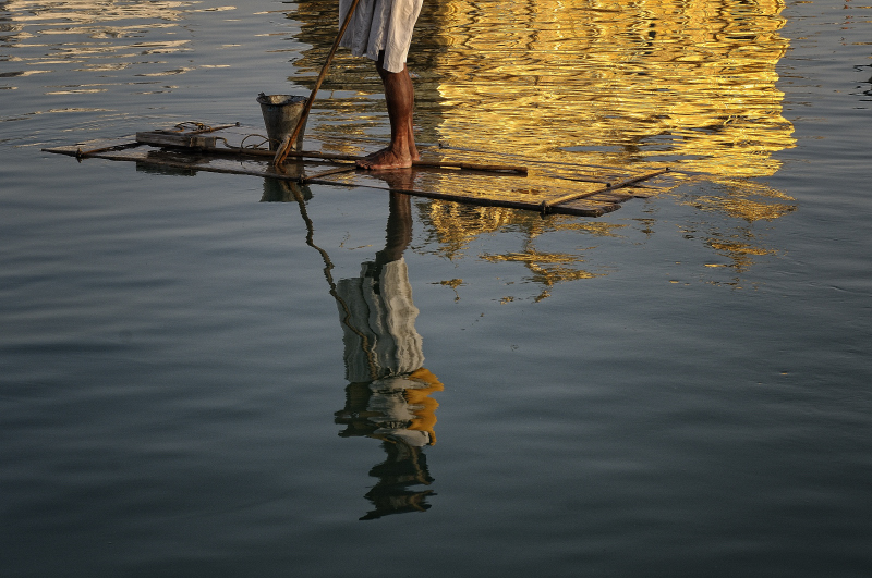 Behind vuole mostrare quello che sta dietro al rito del bagno purificatore o della visita del tempio – scopi primari del devoto. Vuole descrivere questo viaggio dietro le quinte del pellegrinaggio. Un percorso in immagini di quanto accade attorno e dietro il momento della preghiera.