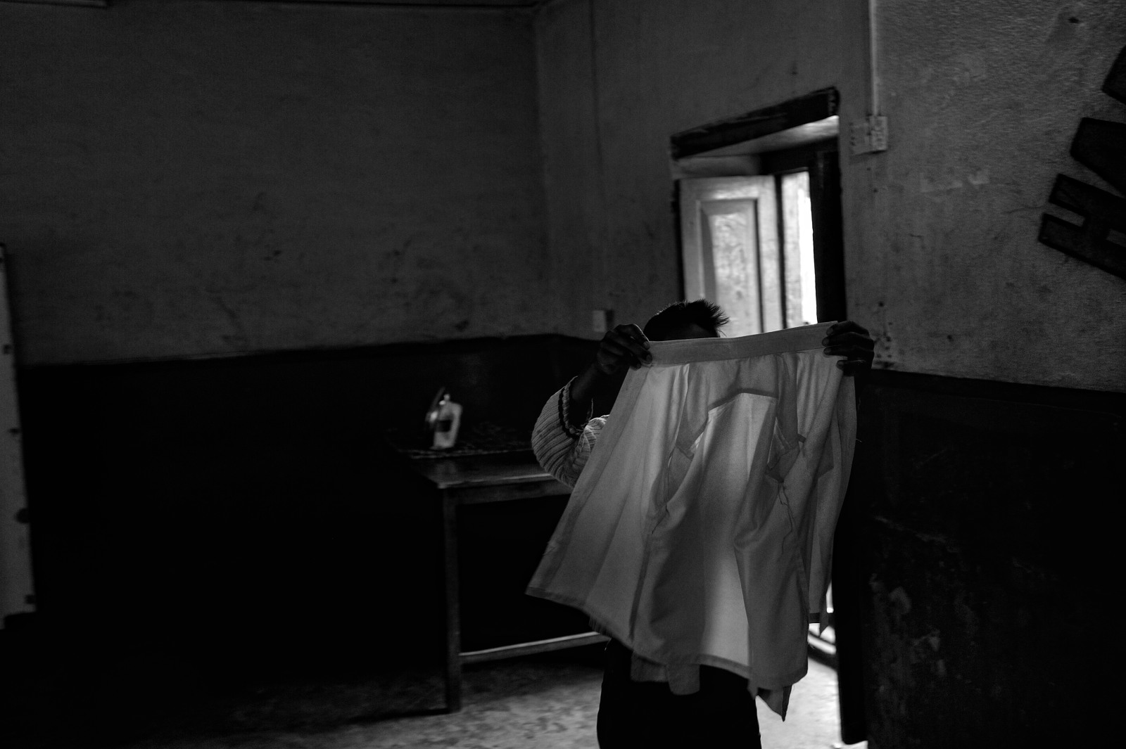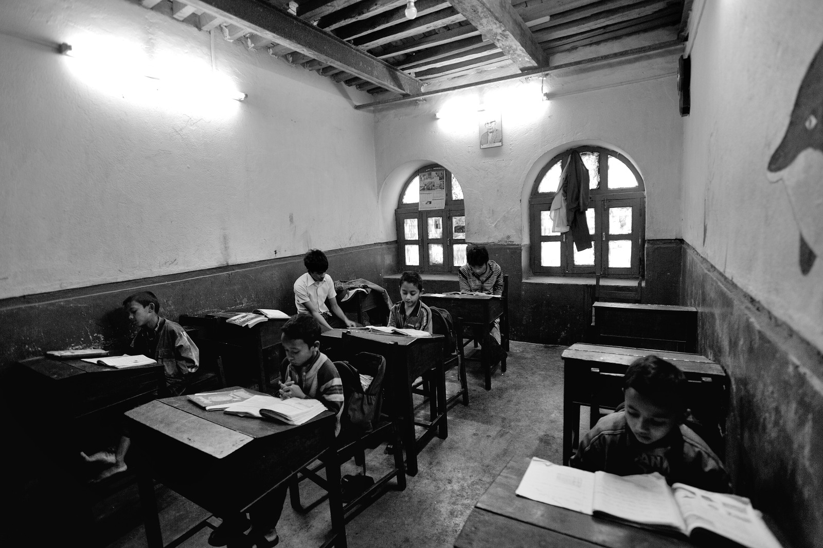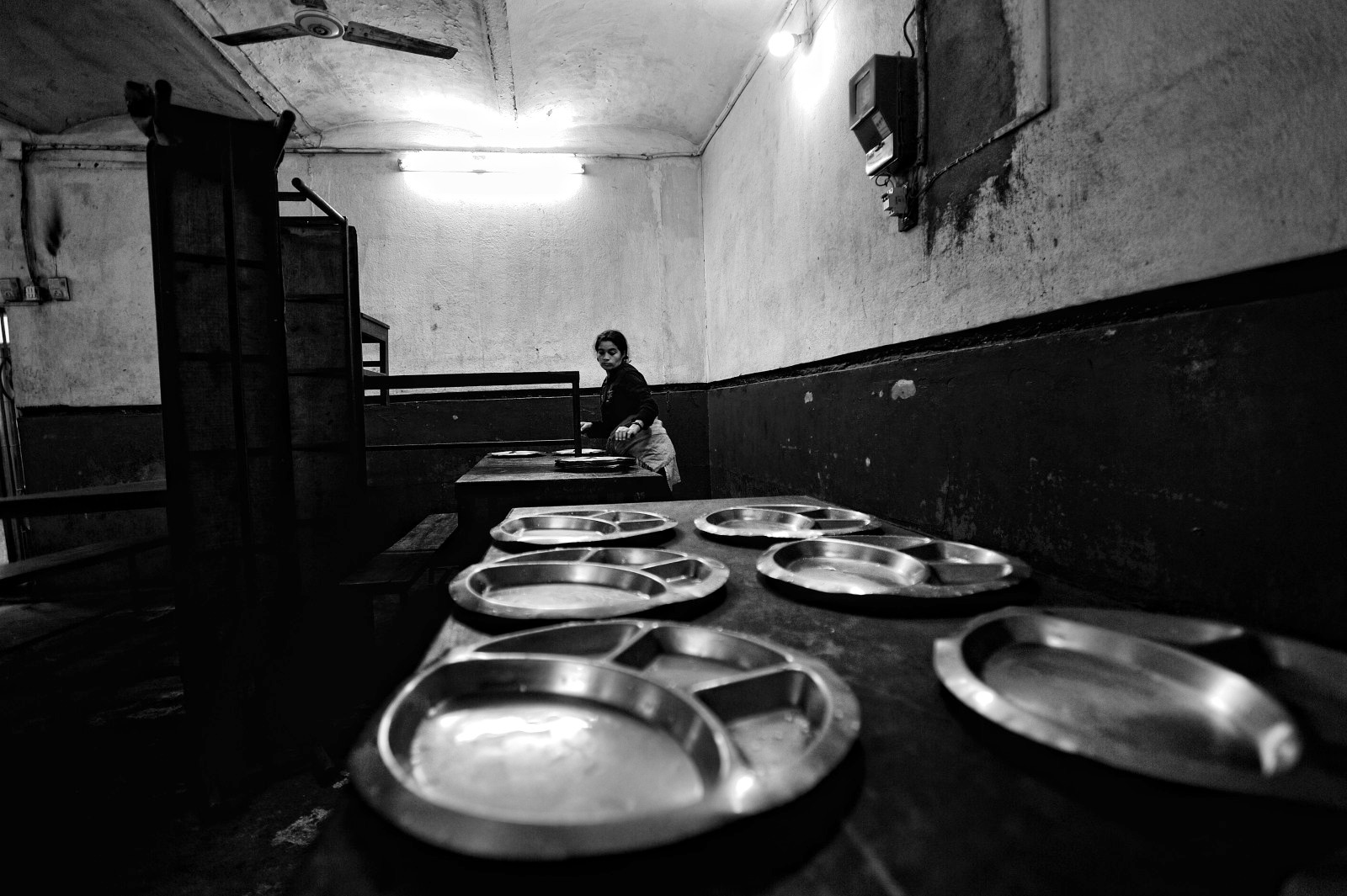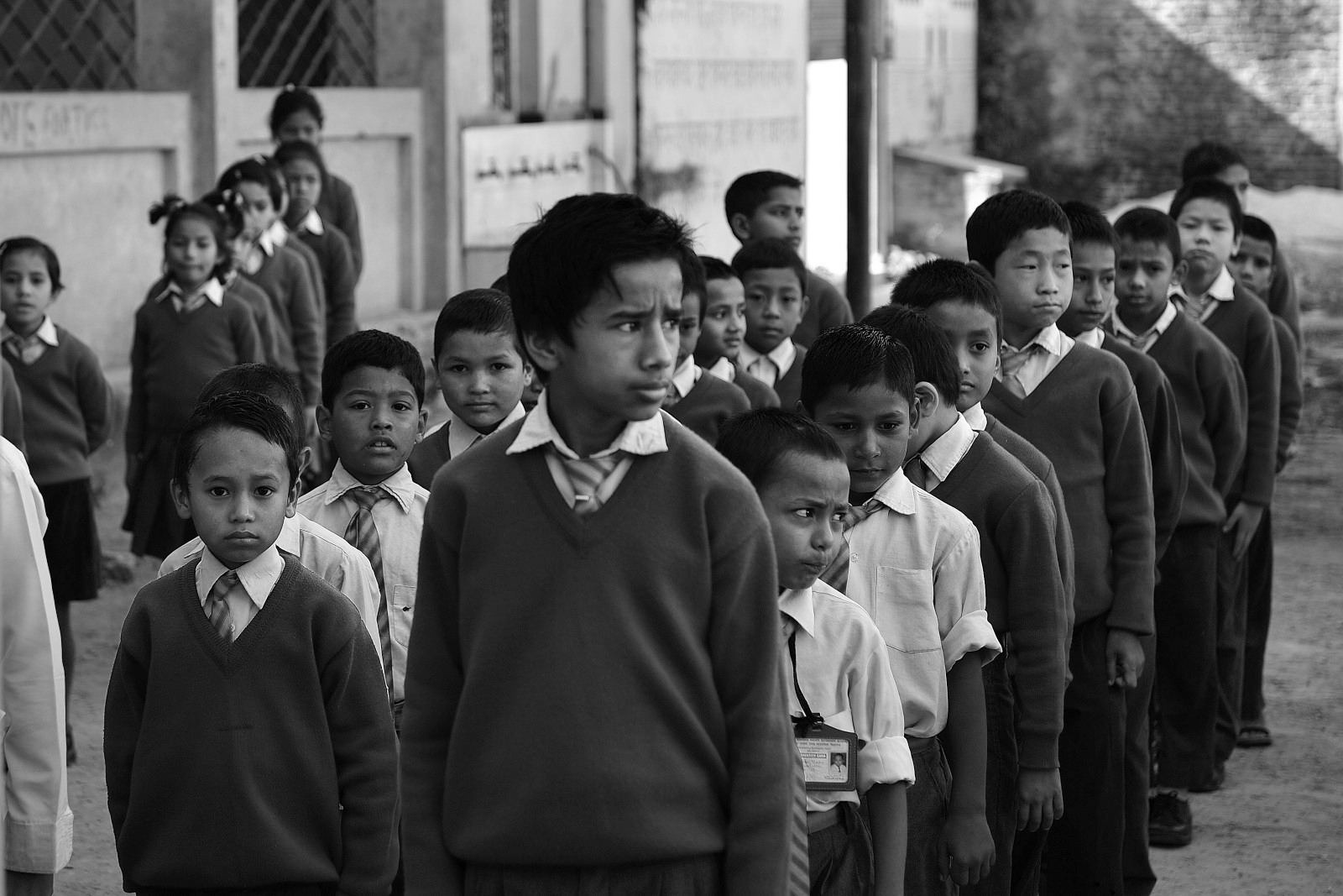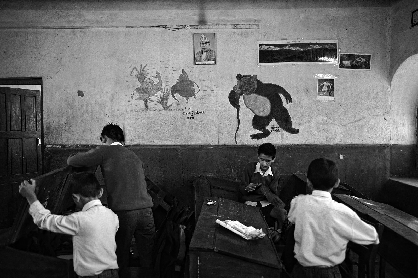 Nel periodo in cui ero a Kathmandù mi sono imbattutto casualmente nel più importante orfanotrofio della città. Ai piedi della parte vecchia si affaccia su una delle strade più caotiche frequentate dai nepalesi e dai turisti che salgono a piedi nella piazza principale. Incuriosito sono entrato. Sono stato accolto da un gruppo prima imbarazzato e poi festante di ragazzini dall’età variabile tra i 4 e i 14 anni. Stavano giocando a calcio nel piazzale interno. Mi sono messo anche io a tirare due calci al pallone e poi ho iniziato a fotografare. Inizialmente l’idea era di fare due scatti, senza pensare a una storia da raccontare, poi un piccolo progetto ha cominciato a prendere forma nella mia mente. Niente di incredibile, ma mi sono messo in qualche modo a raccontare i ritmi della vita nell’orfanotrofio. Ci sono tornato di notte, prima della sveglia mattutina, sono stato con loro a colazione, a pranzo. Li guardavo mentre studiavano e mentre giocavano ai videogiochi caricati su un vecchio pc molto probabilmente donato ormai molti anni or sono. Sono tornato alla sera quando aiutavano a preparare la cena, apparecchiavano la sala mensa e ripulivano i piatti dopo mangiato. Li ho seguiti preparasi per andare a letto. Sono ritornato la mattina dopo le festività legate alla Dusserha e li ho osservati mentre si preparavano per andare a scuola, si lavavano i denti, si pettinavano, si vestivano con la divisa – pantaloni e giacca scuri, camicia bianca e cravatta bordeaux – aiutandosi a vicenda. I più grandi che legavano le scarpe ai piccoli e, paradossalmente, i piccoli che insegnavano a leggere ai più grandi. Li ho accompagnati, impeccabili nelle loro divise, stirate ogni mattina, fin dentro la scuola pubblica e ho assistito alle lezioni.