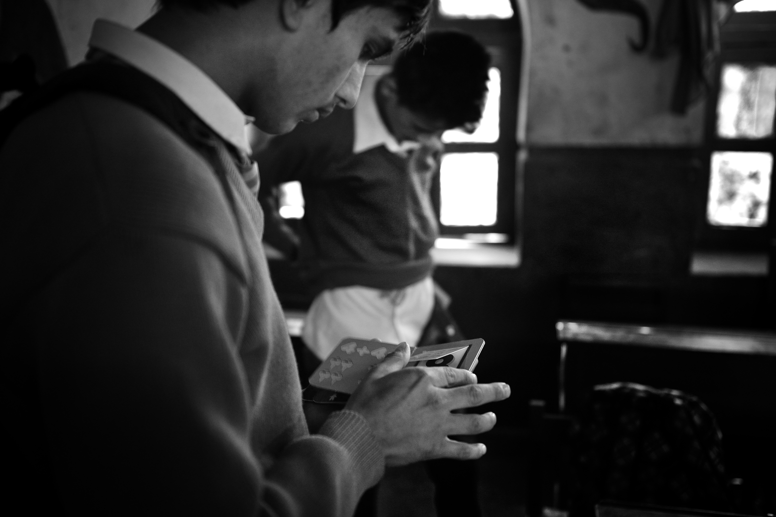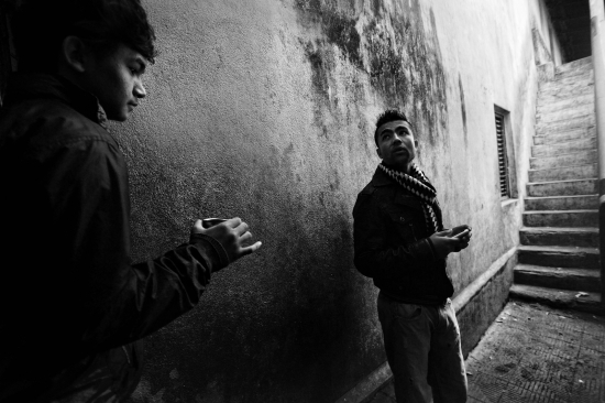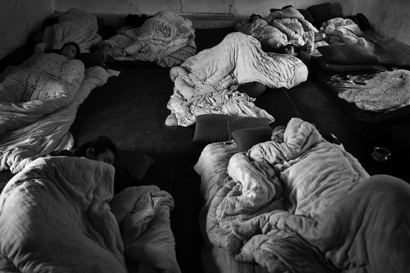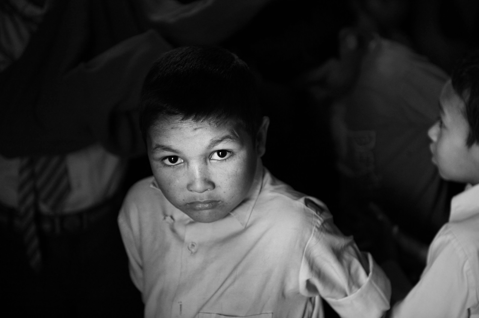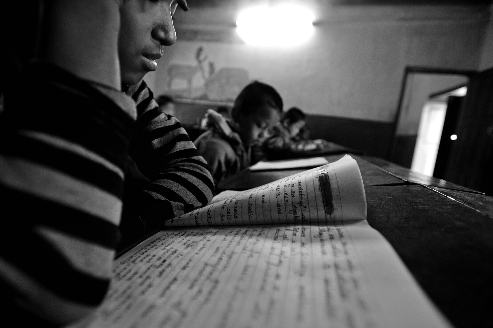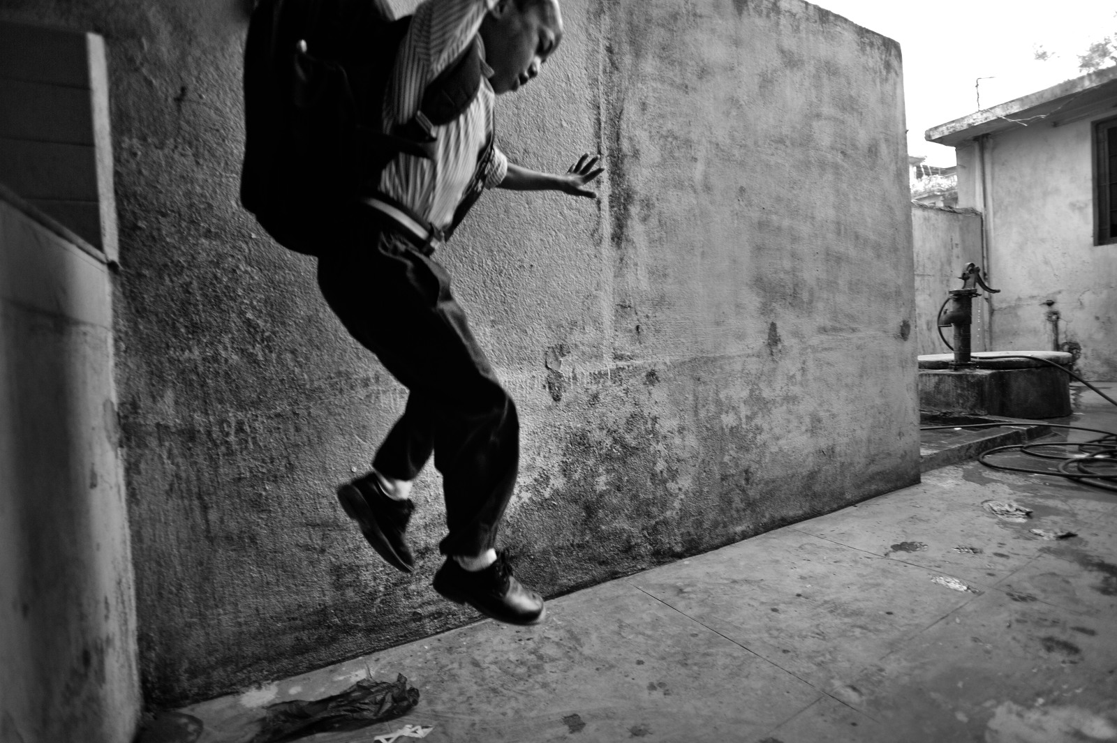 Nel periodo in cui ero a Kathmandù mi sono imbattutto casualmente nel più importante orfanotrofio della città. Ai piedi della parte vecchia si affaccia su una delle strade più caotiche frequentate dai nepalesi e dai turisti che salgono a piedi nella piazza principale. Incuriosito sono entrato. Sono stato accolto da un gruppo prima imbarazzato e poi festante di ragazzini dall’età variabile tra i 4 e i 14 anni. Stavano giocando a calcio nel piazzale interno. Mi sono messo anche io a tirare due calci al pallone e poi ho iniziato a fotografare. Inizialmente l’idea era di fare due scatti, senza pensare a una storia da raccontare, poi un piccolo progetto ha cominciato a prendere forma nella mia mente. Niente di incredibile, ma mi sono messo in qualche modo a raccontare i ritmi della vita nell’orfanotrofio. Ci sono tornato di notte, prima della sveglia mattutina, sono stato con loro a colazione, a pranzo. Li guardavo mentre studiavano e mentre giocavano ai videogiochi caricati su un vecchio pc molto probabilmente donato ormai molti anni or sono. Sono tornato alla sera quando aiutavano a preparare la cena, apparecchiavano la sala mensa e ripulivano i piatti dopo mangiato. Li ho seguiti preparasi per andare a letto. Sono ritornato la mattina dopo le festività legate alla Dusserha e li ho osservati mentre si preparavano per andare a scuola, si lavavano i denti, si pettinavano, si vestivano con la divisa – pantaloni e giacca scuri, camicia bianca e cravatta bordeaux – aiutandosi a vicenda. I più grandi che legavano le scarpe ai piccoli e, paradossalmente, i piccoli che insegnavano a leggere ai più grandi. Li ho accompagnati, impeccabili nelle loro divise, stirate ogni mattina, fin dentro la scuola pubblica e ho assistito alle lezioni.