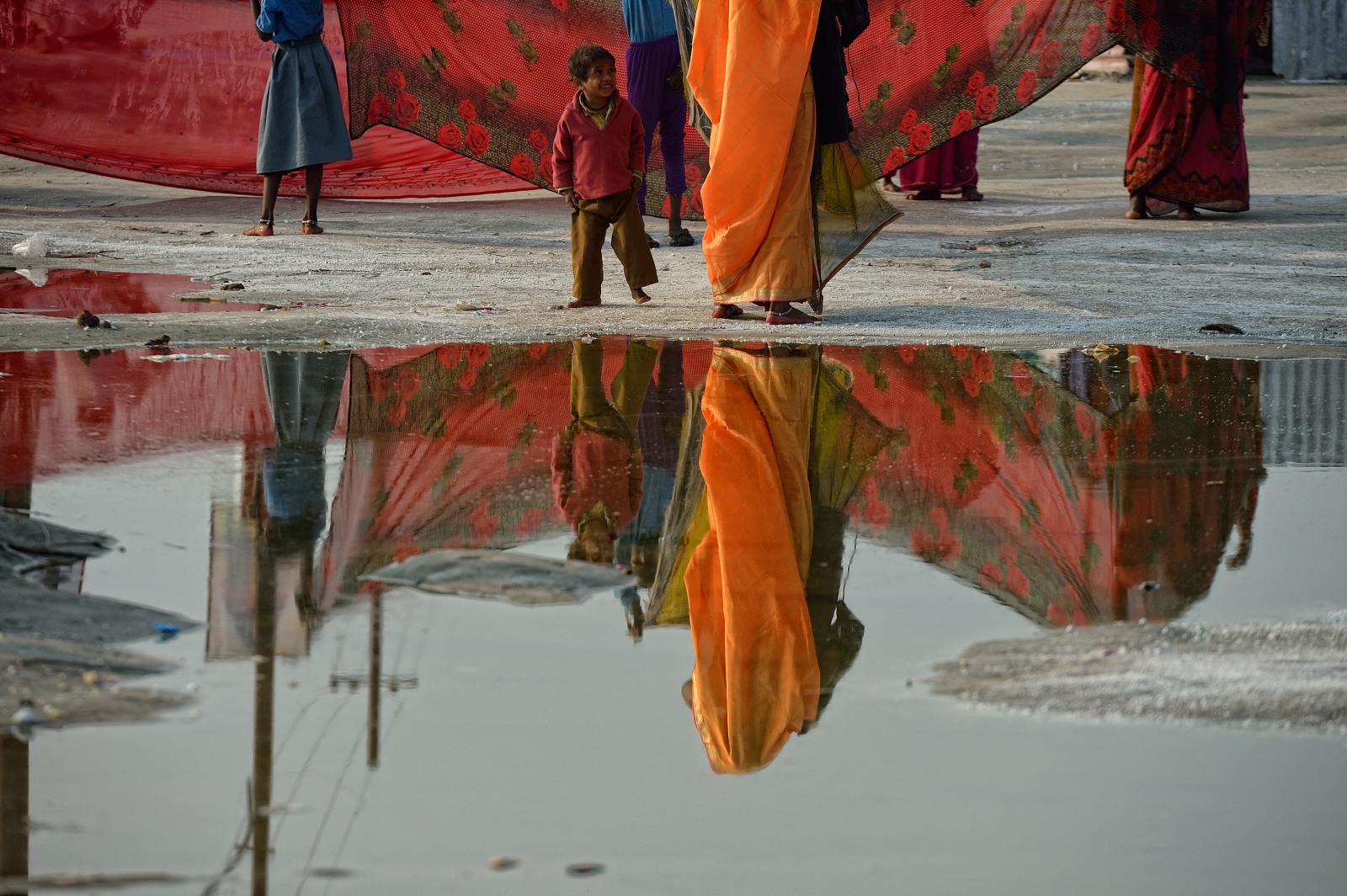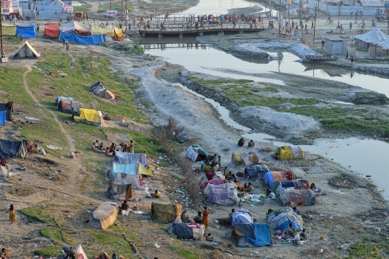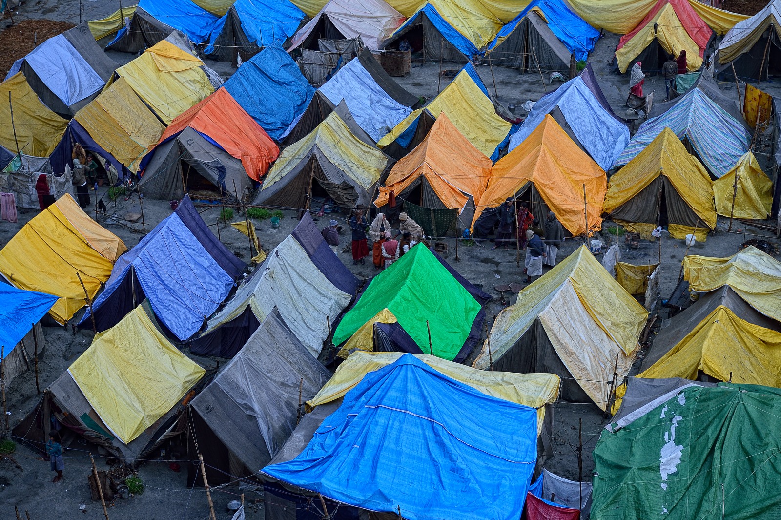 Lasciate le rive del fiume, ci addentriamo nella gigantesca tendopoli popolata da un’incredibile caleidoscopio di umanità.