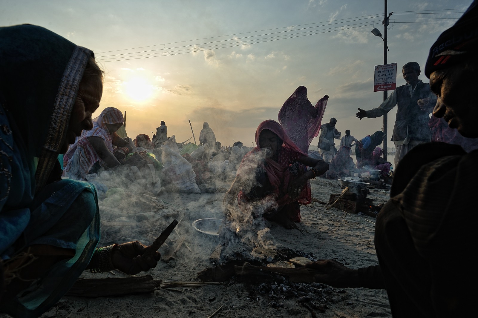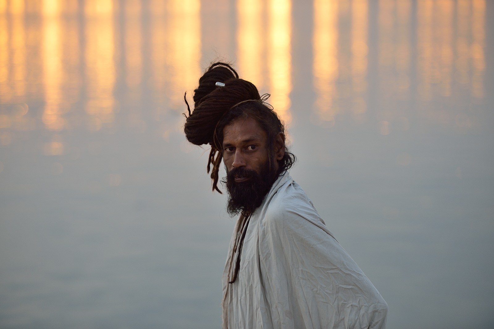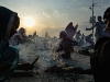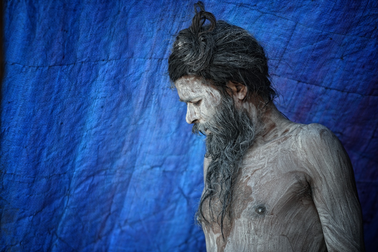 [Tra i sadhu, che si riuniscono al Kumbh Mela, delle figure particolari sono i Naga – gli uomini asceti coperti di cenere – che da mattina a sera siedono nudi all’aperto e nel freddo a ravvivare la fiamma dedicata al dio distruttore di illusioni Shiva, tra chilum di hashish o lunghe meditazioni con lo sguardo fisso sul fuoco].