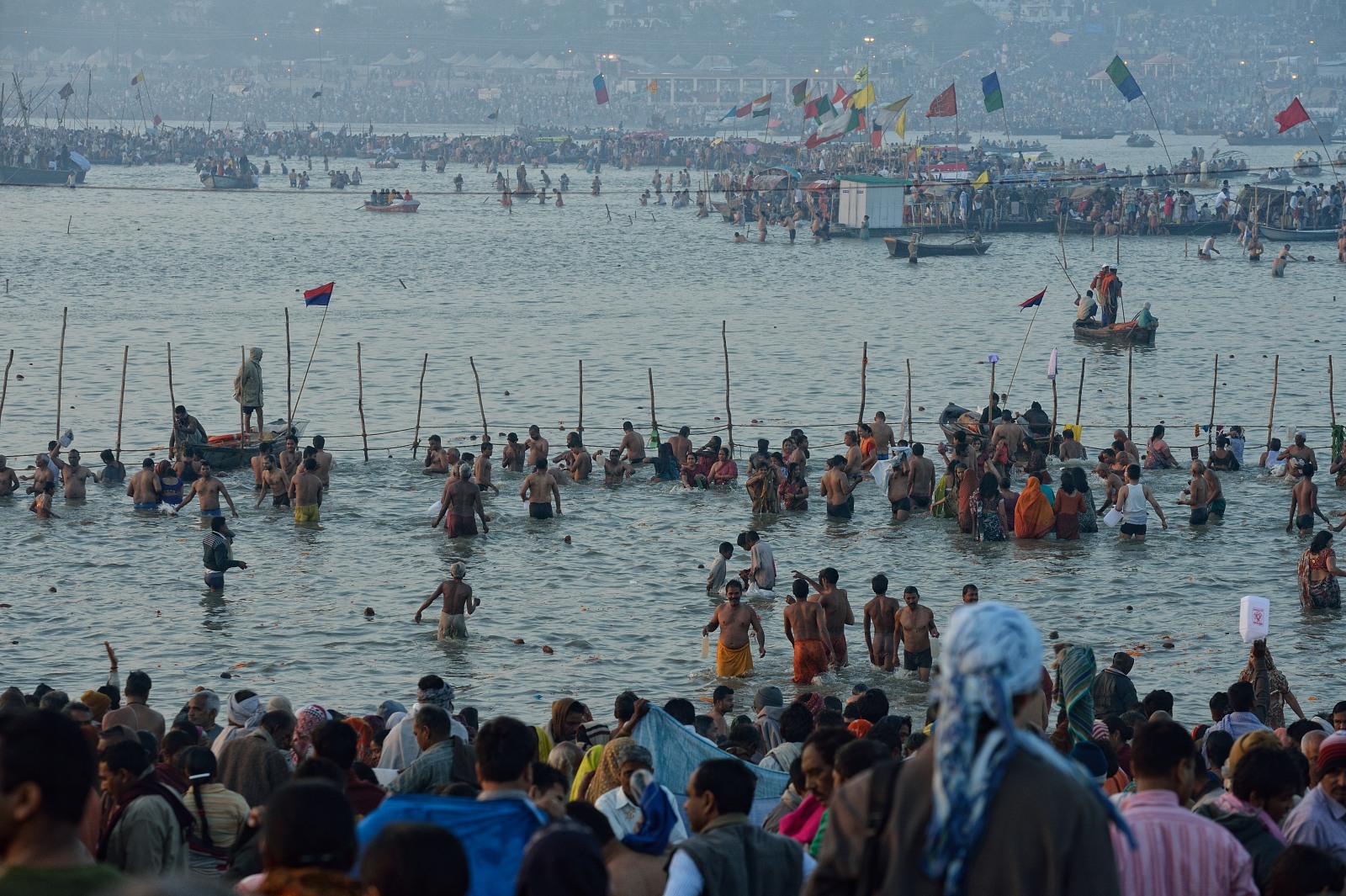 [Vi accorrono milioni di pellegrini e per il Maha Kumbh Mela del 2013, quello più grande e importante che si è svolto ad Allahabad, alcune stime, hanno parlato di oltre centoventi milioni, cifre che ne hanno fatto il più grande pellegrinaggio al mondo].