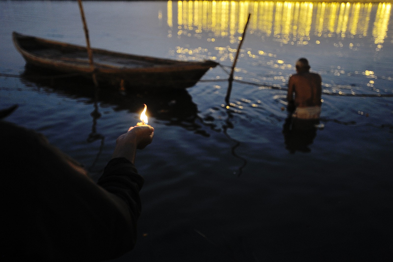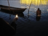 E’ l’ora magica del tramonto sul Gange, la dea Ganga, il fiume sacro a ottocento milioni di hindu. Le rive si illuminano di fuochi e risuonano dei canti e dei mantra della puja vespertina. In un’aria pregna di spiritualità, migliaia di pellegrini accendono le diya, piccole lanterne di creta alimentate da burro liquefatto o da un pezzetto di canfora, poi le abbandonano delicatamente alle acque scure dentro precarie imbarcazioni fatte di foglie e riempite di petali colorati. Anche noi ci avviciniamo ai falò, accendiamo gli stoppini delle nostre offerte e, con una preghiera di ringraziamento per essere testimoni e partecipi di questo grande rito collettivo, consegniamo al fiume la nostra fragile feluca. Guardiamo le fiammelle danzare sull’acqua simili a tanti fuochi fatui, accendendosi e spegnendosi come le lucciole le sere d’estate, le vediamo arenarsi contro un improvviso ostacolo e riprendere poi a fluttuare fino a scomparire, portate dalla corrente o inghiottite da un’onda un poco più forte…