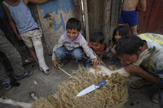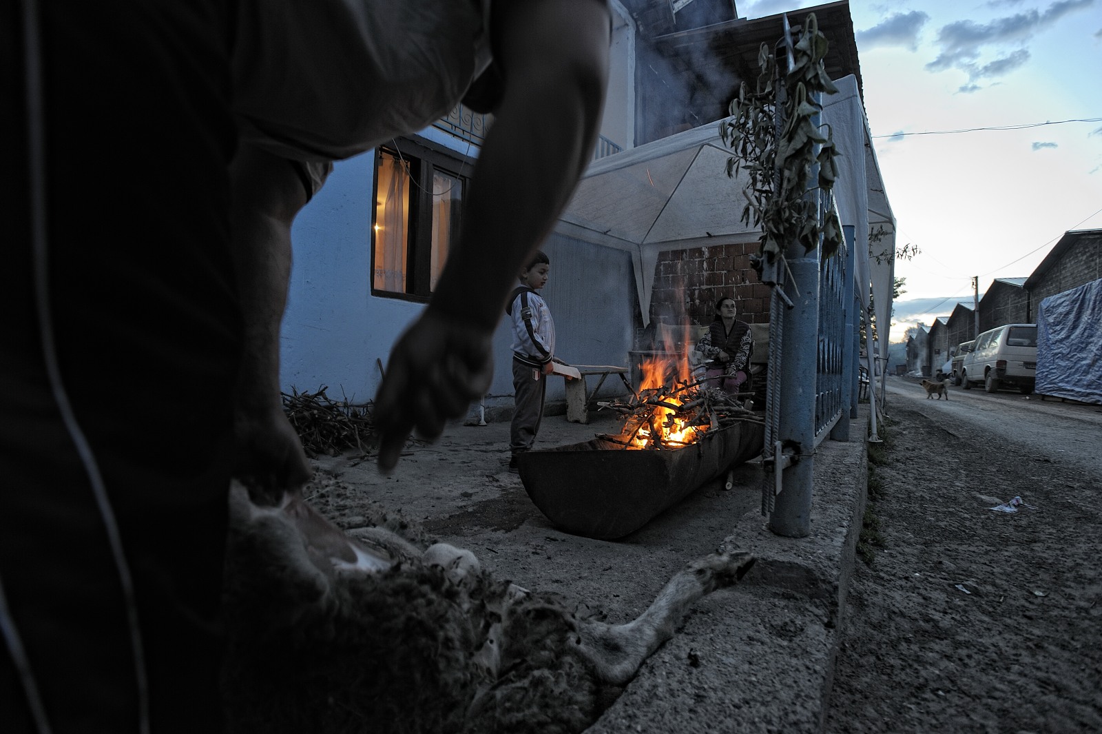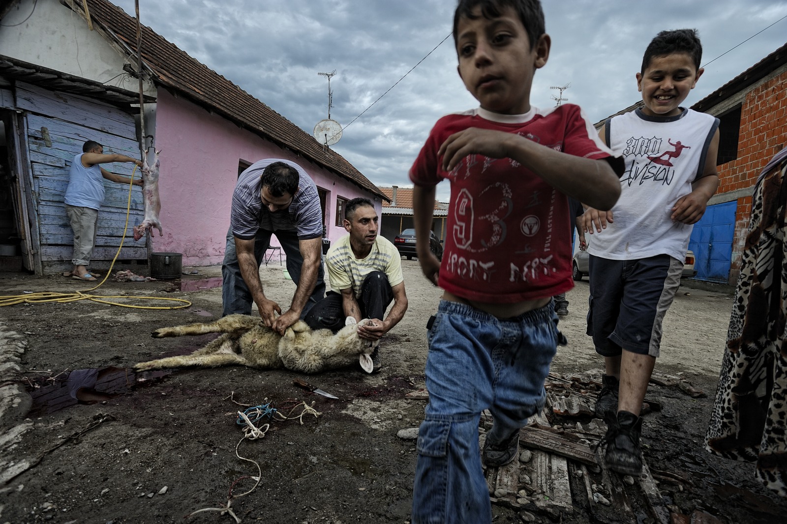 Il 6 maggio del calendario gregoriano – quello ufficialmente usato in tutto il mondo – si festeggia uno dei giorni più importanti per i popoli dei Balcani. Noto anche con il termine Djurdjevdan nasce come una Slava (celebrazione di un Santo Patrono) religiosa ortodosso-serba in onore di San Giorgio ma nel tempo, a prescindere dal credo, è stata adottata dalle comunità Rom dell’area dell’ex-Jugoslavia in particolare della Serbia. In lingua romani prende il nome di Ederlezi. Nella loro tradizione diventa una sorta di festa di inizio primavera. Le famiglie si riuniscono, parenti, genitori, figli che per motivi di lavoro sono emigrati all’estero rientrano per festeggiare insieme. Si addobbano le case, ci si veste con abiti eleganti, si balla in improvvisate balere davanti a casa, ci si ‘purifica’ con l’acqua, si indossa una corona di rami dalle foglie verdi, ma soprattutto si cucina l’agnello che viene preparato fin dai giorni prima. Il rito dell’uccisione, decisamente cruento, segue la tradizione musulmana halal, cioè lo sgozzamento e il morire dissanguato dell’animale. Per gli adulti è un qualcosa di normale mentre per i bimbi viene visto quasi come un gioco. Si mangia, si beve, si danza, si accendono falò fin dalle prime luci dell’alba per andare avanti fino al mattino seguente. Per una settimana questo quartiere cresciuto ai margini della città, diventa pieno di allegria, di gioia. Le donne cucinano, gli uomini preparano i fuochi, i bambini ritrovano i genitori emigranti, si ride, si scherza, si fa festa in compagnia.