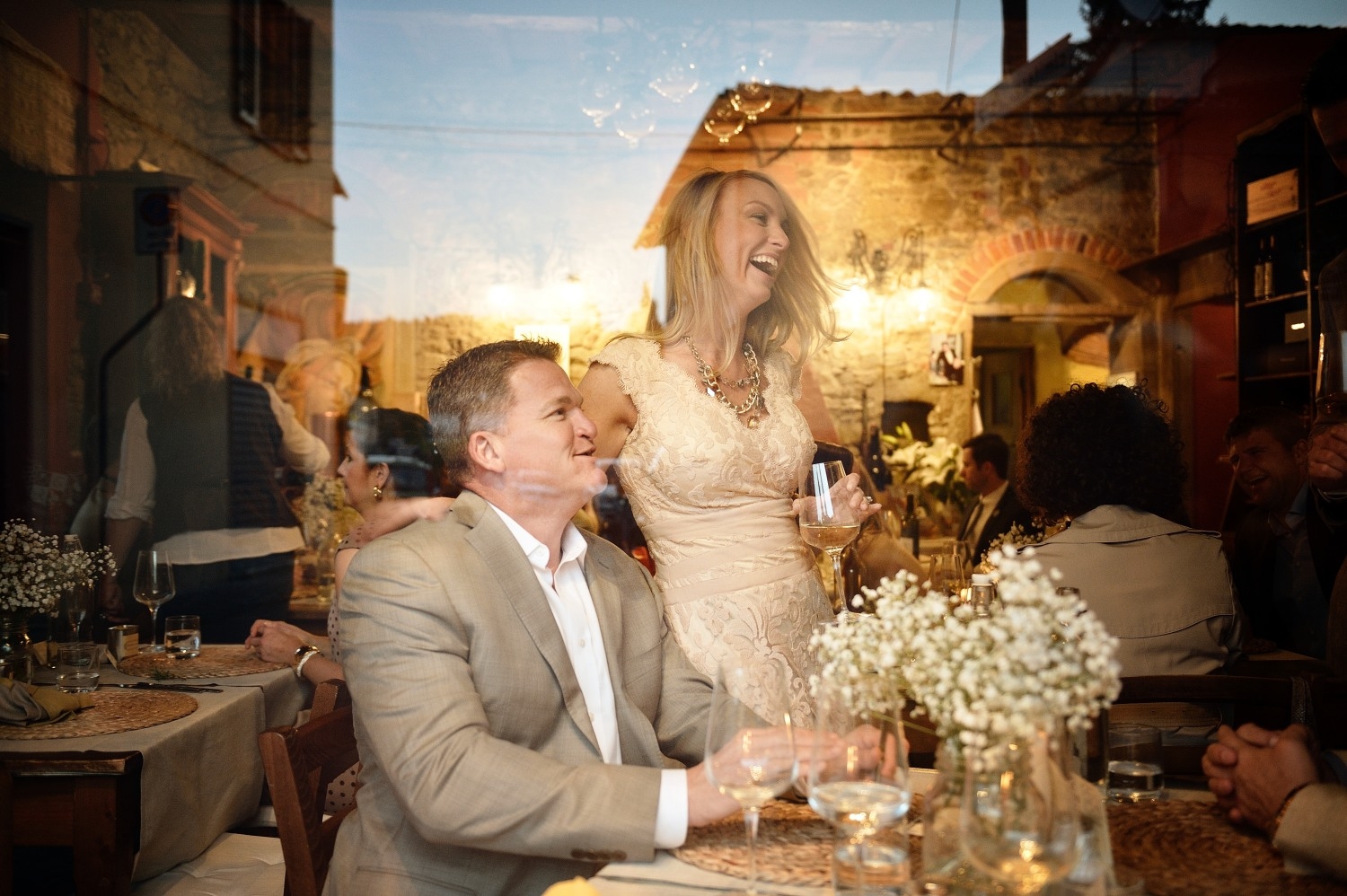 After the customary vows and formalities and cocktail hour in the castello’s garden,the party sat down to a wonderful meal of traditional Italian fare and wine from the Castello (Testamatta).  And while the evening drew on and the sun finally dipped below the horizon, the party continued with dancing and celebrations until the evening finally came to a close in the quiet of a tranquil night.