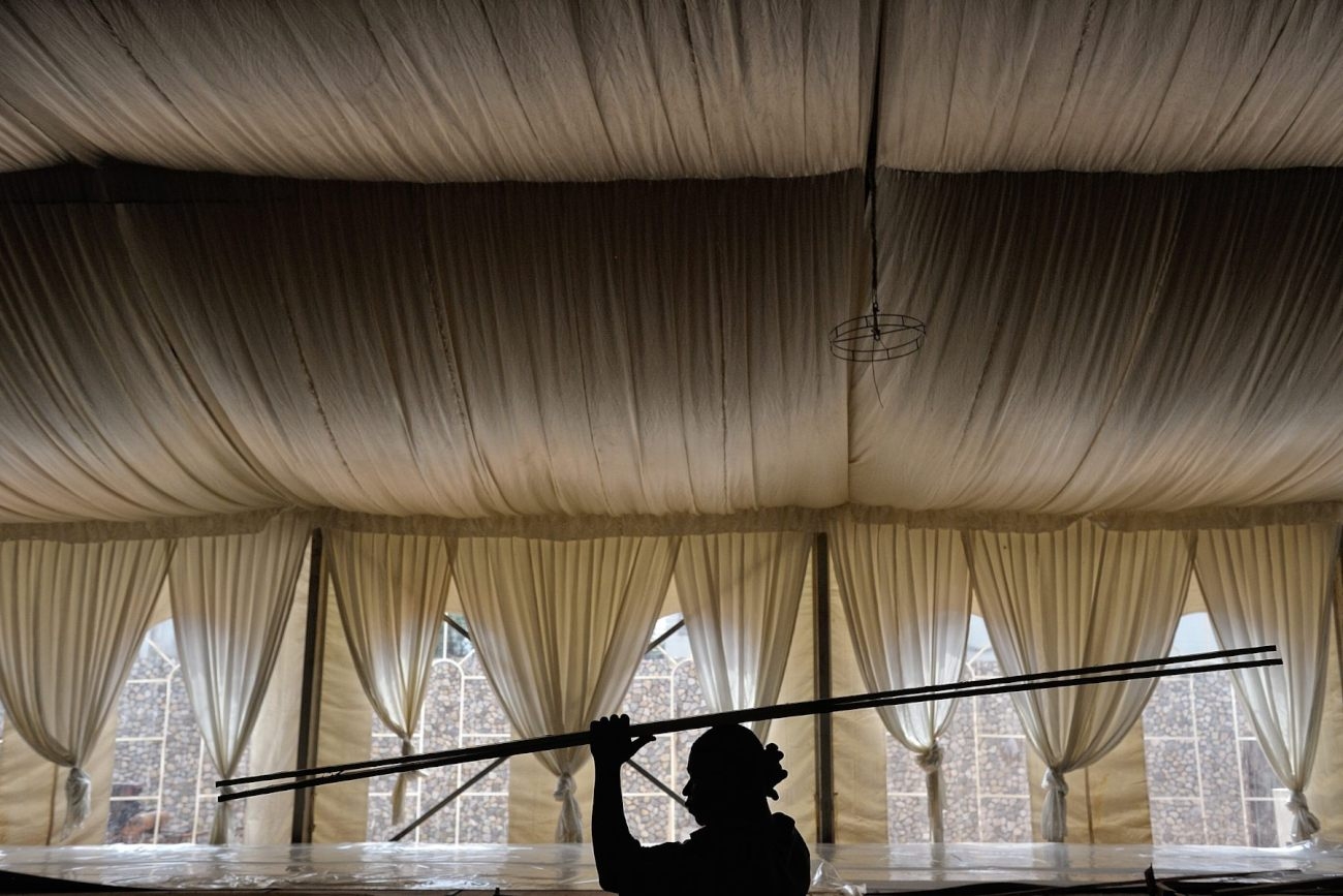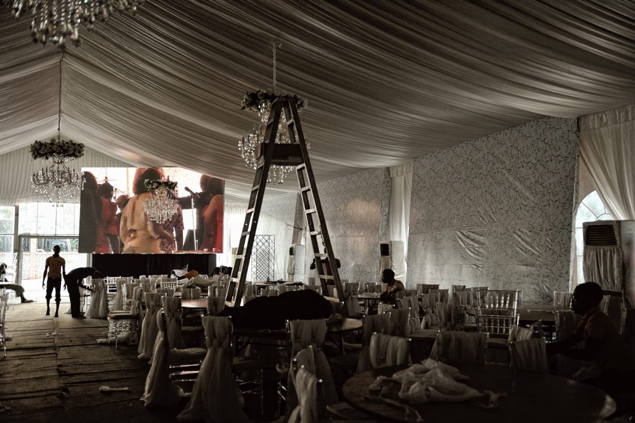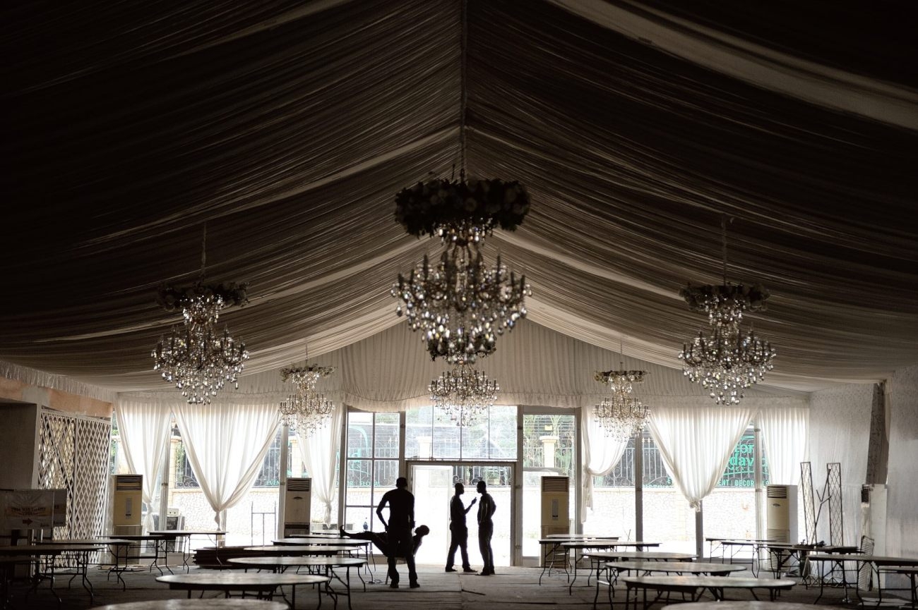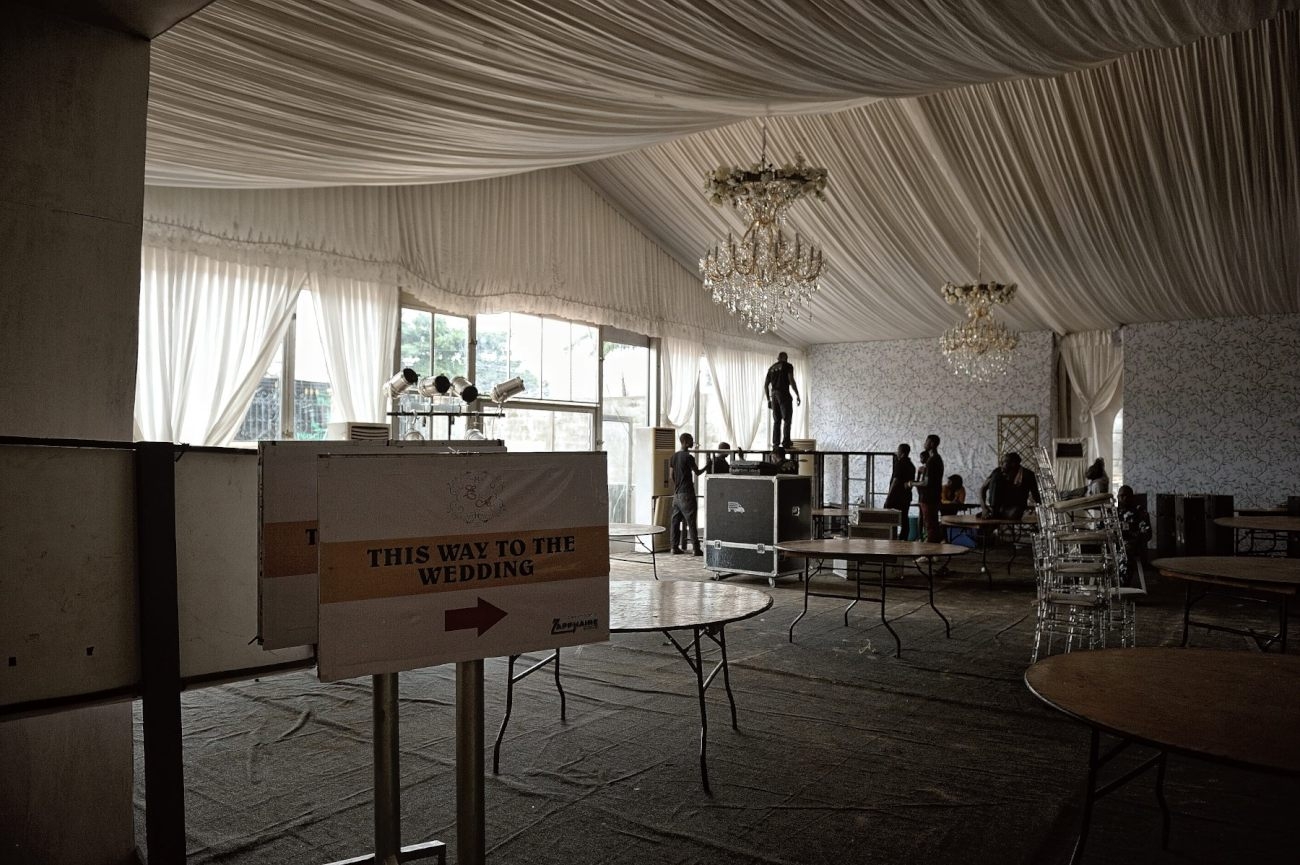 L’allestimento della sala, un’ala di casa del padre della sposa, dove si sarebbe svolto il ricevimento.