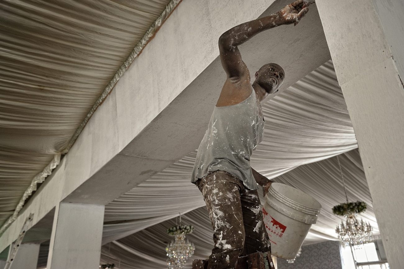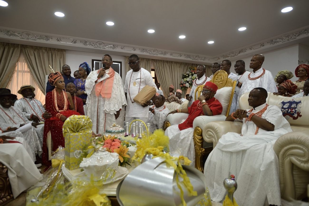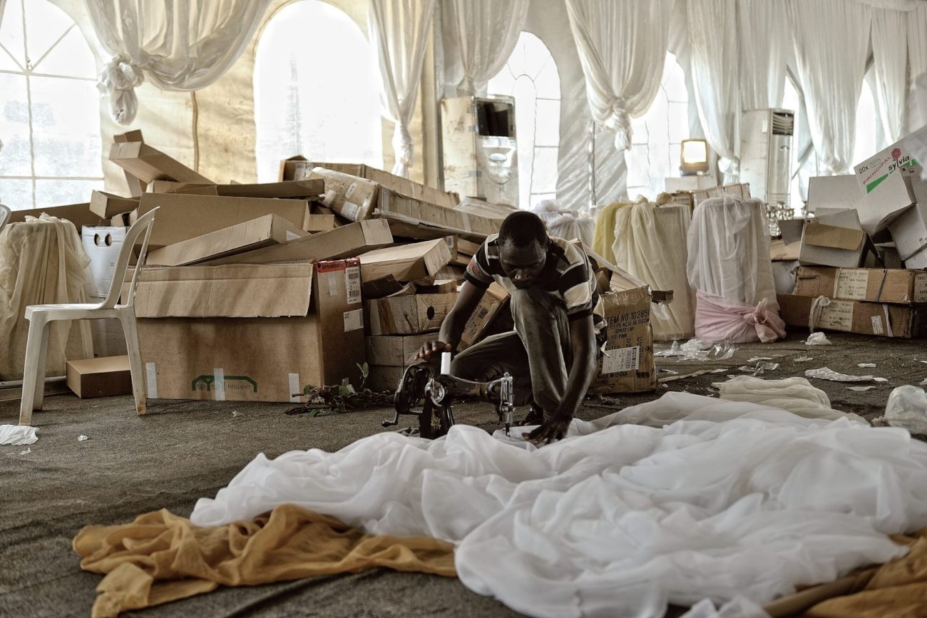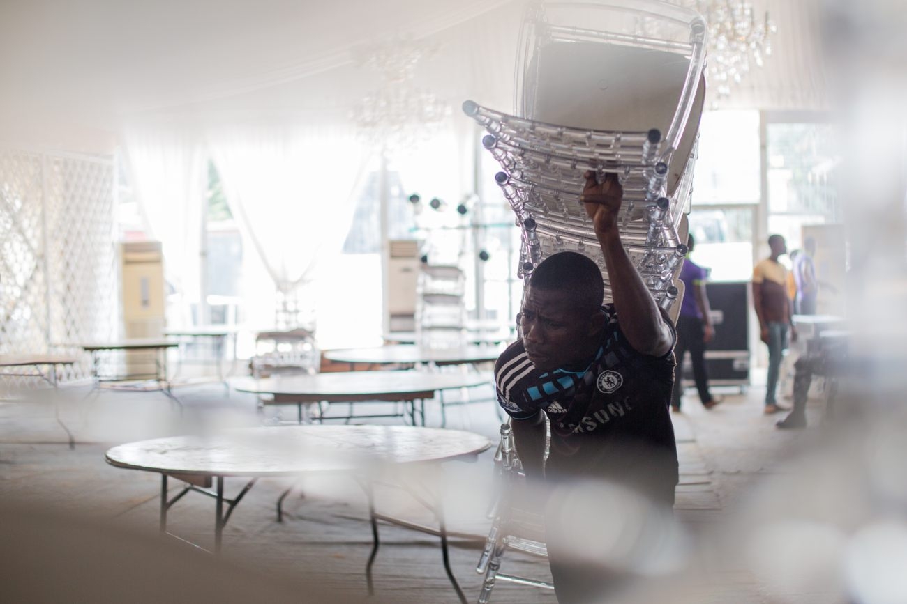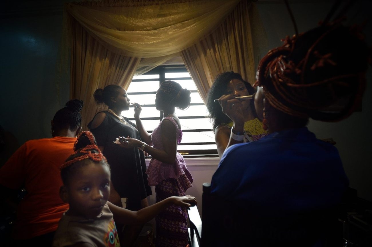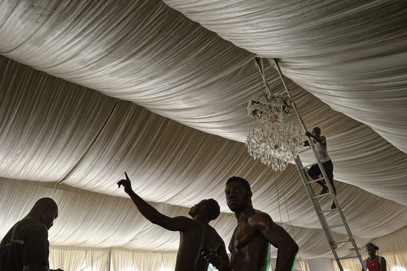 Partimmo io e parte del mio staff. Ancora non avevo capito né chi era la sposa né tanto meno che si trattava di un matrimonio reale. Avevo intuito che fossero dei benestanti, ma la mia immaginazione si fermava lì. Fu dopo il nostro arrivo prima a Lagos e poi a Benin City che iniziammo a renderci conto che non era un semplice matrimonio di una coppia di ricchi nigeriani. Mi ricordo che entrammo in casa della sposa passando tra una ventina di guardie del corpo, camionette della polizia, diversi militari molti dei quali indossavano giubbotti antiproiettile e tenevano un mitra a tracolla. Beh doveva essere qualcosa di più. Conoscemmo la sposa, i suoi fratelli, la sua famiglia. Nel parlare ecco che Ivie, la futura convolante a nozze, con una naturalezza imbarazzante ci disse che il suo futuro marito era un principe. Ci guardammo per essere sicuri di avere capito bene. Si avevamo capito bene: my husband to be is a prince! Iniziammo a scattare con occhi e attenzione nuova. Adesso non era più un servizio ‘normale’ ma stava diventando qualcosa di diverso. Un reportage che andava oltre la fotografia di matrimonio. Mi vennero in mente i servizi di Benedicte Kurzen, di Robin Hammond, di Glenda Gordon che avevano e stanno ancora lavorando in Nigeria. Però, a differenza di loro, io ero stato scelto come fotografo personale della coppia e la cosa mi inorgogliva non poco. Inizia così a raccontare quello che stavo vivendo fin dagli allestimenti, dalla preparazione delle ‘bomboniere’, dai rituali pre wedding insomma volevo documentare una storia che mai avevo vissuto, un’esperienza molto particolare, totalmente diversa da quello che avevo mai fotografato prima. Tradizioni, culture, rapporti umani inconsueti e nuovi ai quali non avrei mai pensato o sperato di poter condividere. Volevo fare un reportage che facesse vedere tutto questo.