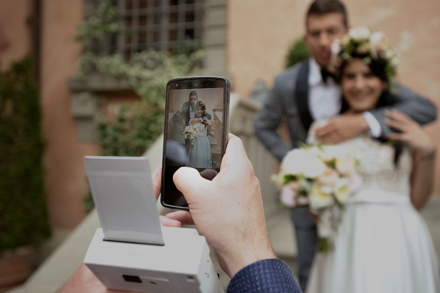 In sintesi un consiglio personale da fotografo che fotografa matrimoni da oltre 20 anni. Suggerite ai vostri ospiti di depositare il cellulare, lo smartphone e qualsiasi altra amenità elettronica nel guardaroba con la borsa o il soprabito. Lasciate che siano i professionisti a documentare tutta la giornata, chiedete a loro se volete delle fotografie personali, gli sposi sicuramente non avranno problemi a darvele in un secondo momento. I vostri ospiti vivranno con più intensità tutta la giornata e sicuramente di riflesso anche voi. Le fotografie che riceverete saranno anche più belle senza tutte quelle facce coperte da tablet o telefonini all’opera. Magari avete firmato con il Fotografo un contratto che vieta la pubblicazione sui social delle foto per una questione di privacy e invece vi troverete su Facebook in tempo reale magari con delle espressioni o in situazioni anche imbarazzanti (durante la festa quando il tasso alcolico è cresciuto può accadere di tutto). In alternativa preparate una area foto, il cosiddetto Photoboot, dove divertendosi ognuno potrà farsi le fotografie che vuole, ma sarà in quel luogo e, in genere, durante il ricevimento e quindi non interferirà nei momenti più intimi e solenni della giornata. Poi alla fine come sempre fate quello che volete, ma pensateci seriamente ad un ‘unplugged wedding’.