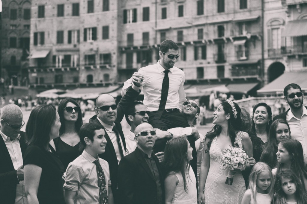 Finita la cerimonia ebraica, alcune foto di rito in Piazza del Campo a Siena e poi rientro in quel di Fontebussi. Gli sposi hanno scelto un servizio fotografico molto naturale e spontaneo che racconta il giorno del matrimonio cogliendone le emozioni, i momenti e le interazioni tra gli ospiti. Non è mancata una piccola parte dedicata alla fotografia di coppia con l’uso anche dell‘infrarosso, ma anch’essa molto informale mentre gli sposi camminano all’interno di Fontebussi.