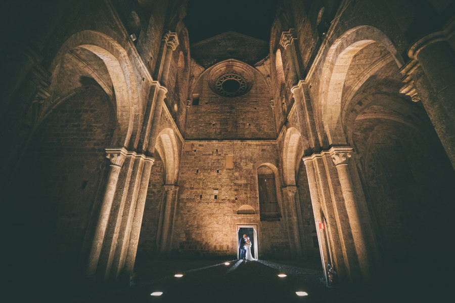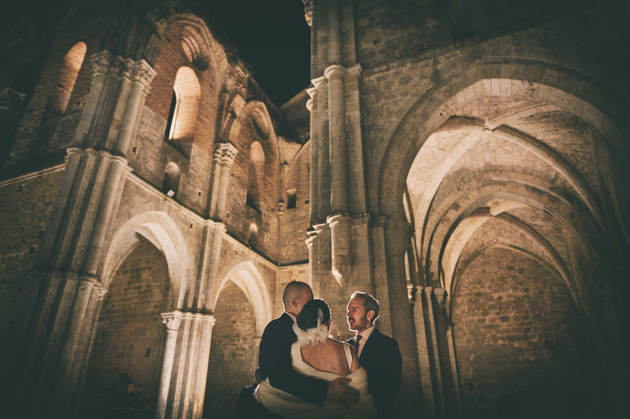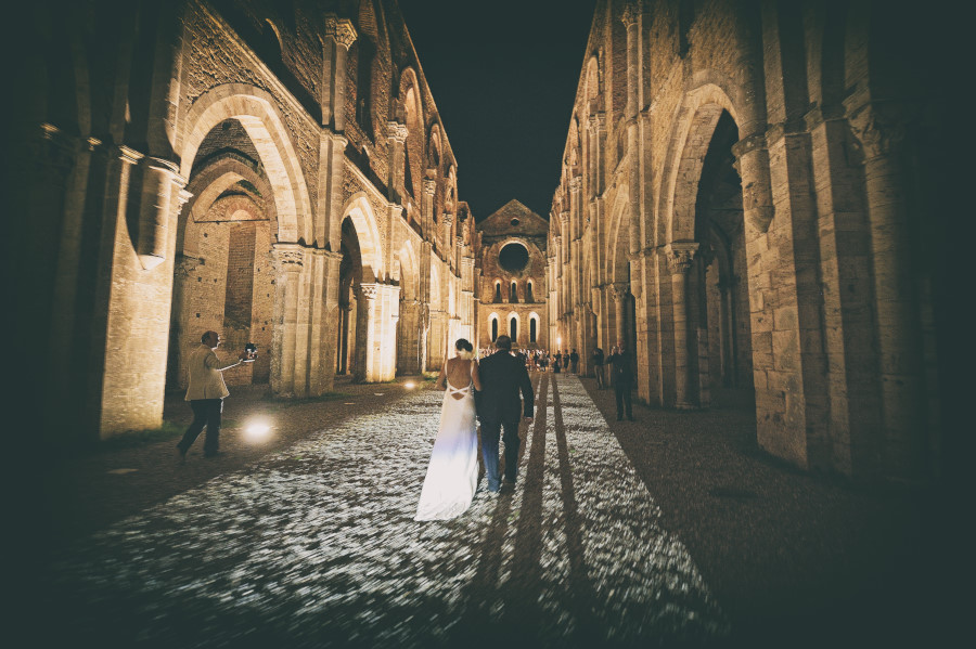 Quando Fabiola, la sposa, mi disse che voleva sposarsi a San Galgano mi si illuminarono gli occhi. E’ un posto magico e tutte le volte che torno in quella splendida abbazia ricevo delle emozioni uniche. Quando poi mi disse che era in notturna, beh – fotograficamente parlando – le manifestai tutto il mio entusiasmo.