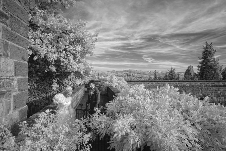 Per le foto di coppia il Castello di Vincigliata offre sempre degli spunti molto interessanti. Heidi ed Alex non erano degli amanti della foto in posa e quindi ho potuto lavorare con una stile reportagistico tipico della mia fotografia. Non sono mancati comunque dei ritratti più formali. Non ho potuto utilizzare tanto la mia fotografia all’infrarosso perché per esaltarne le caratteristiche occorre molto ‘verde’ e il Castello non offre tante opportunità. Mi è piaciuto tanto muovermi intorno agli sposi per cercare di cogliere le loro emozioni spontanee, la loro gioia sincera e vera. Dopo la fine dell’aperitivo, lancio del bouquet e il successivo invito ad accomodarsi per la cena.