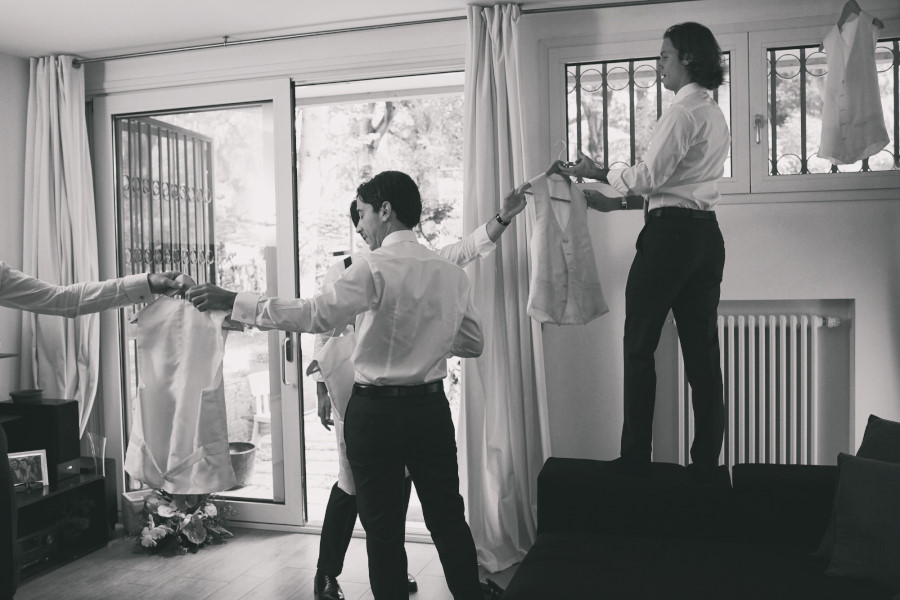 La preparazione di Camilla, la sposa, nella sua casa di famiglia con i suoi genitori, racchiusa tra quelle mura che raccontano e parlano della sua infanzia. Guglielmo, circondato dai suoi migliori amici, inizia a vestirsi anche lui nel suo ambiente.