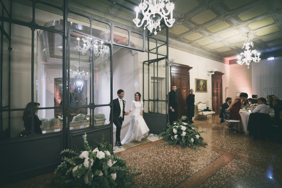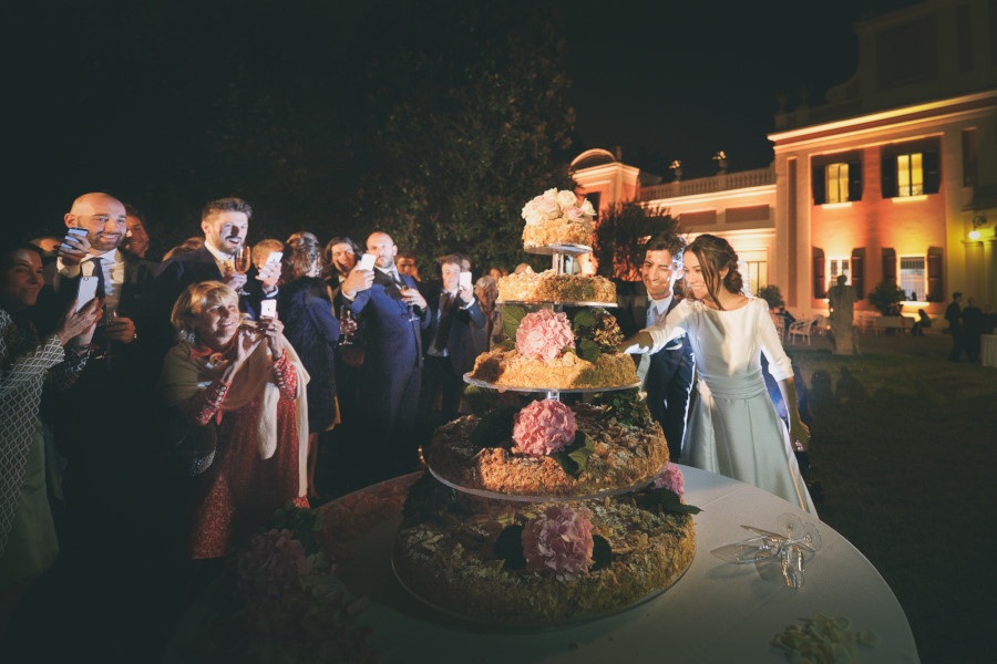Il ricevimento in una villa appena fuori Bologna, anch’essa molto elegante. Il taglio della torta in giardino e il dopo cena con open bar e musica in una delle sale interne.