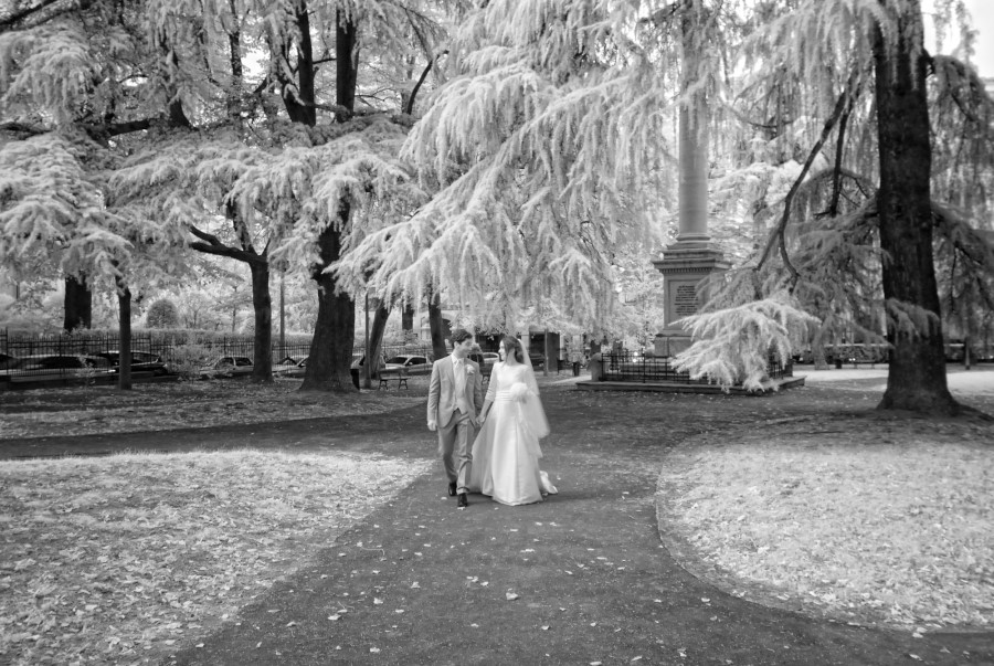 Chi mi conosce sa che adoro scattare all‘infrarosso. Purtroppo per farlo – NON essendo una lavorazione in Photoshop – occorre la luce che attivi nelle piante la sintesi clorofilliana. Nel caso di Camilla e Guglielmo ho potuto fare solo poche foto all’infrarosso perché poi dovevamo scappare a San Luca per non perdere le ultime luci del giorno. Anche nelle foto di coppia cerco sempre di non essere invasivo con scatti non in posa o costruiti. Magari consiglio su dove camminare o sedersi perché – in base alla mia esperienza – vedo un taglio di luce particolare o uno sfondo interessante. Però quello che fanno e come interagiscono lo lascio agli sposi, così da cogliere comunque dei momenti spontanei e naturali.