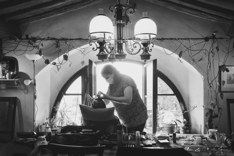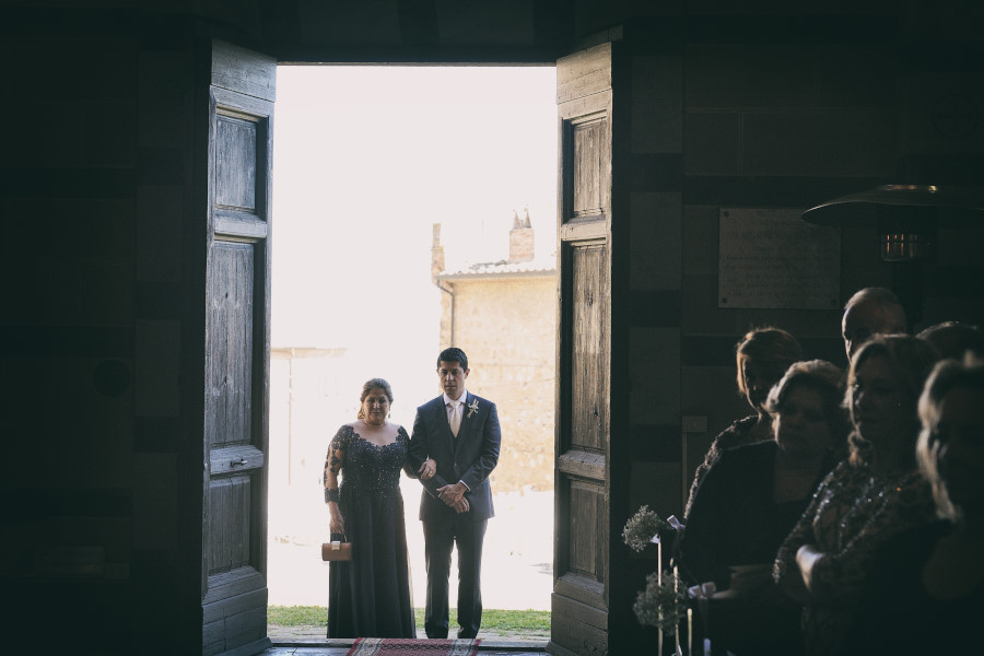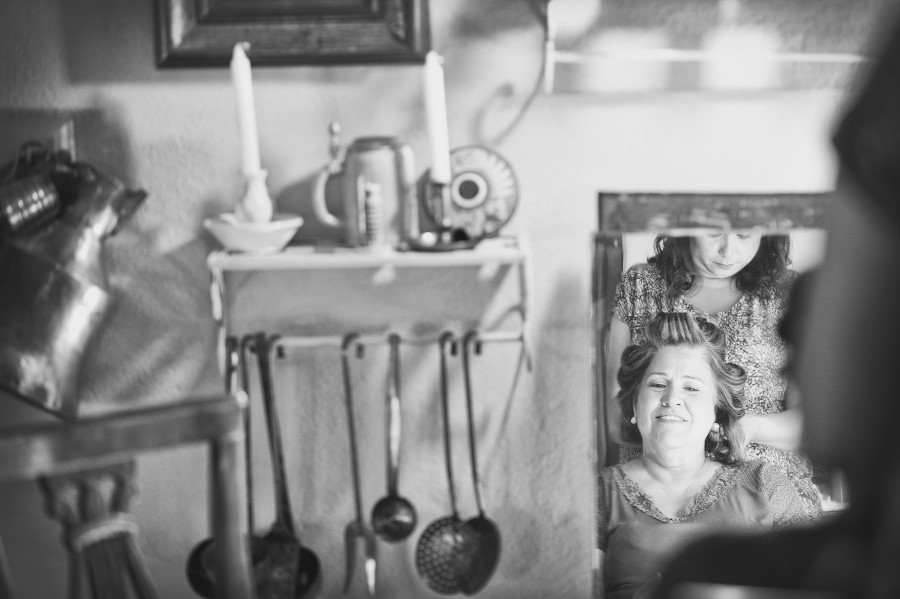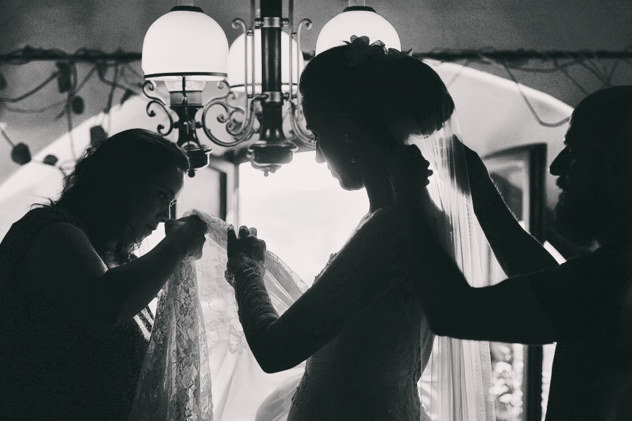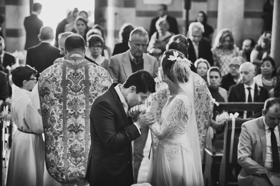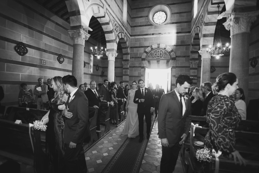 Patricia e Flavio, coppia brasiliana, hanno scelto la Tenuta di Casaglia, un bellissimo borgo medievale che domina su una verde vallata circondata dalle colline toscane non molto distante dal mare. La giornata è stata bellissima. Un caldo giusto di inizio estate e una leggera brezza a mitigare la temperatura. Molto bello per la coppia è stato anche vivere i preparativi, gli allestimenti dal fiorista al catering. Hanno visto nascere il loro matrimonio. Tutto è iniziato con la preparazione della sposa; un pranzo veloce e poi – anche se gli amici in queste occasioni dovrebbe astenersi e godersi il matrimonio – una carissima amica ha iniziato il trucco mentre un altro carissimo amico si occupava delle acconciature. Molta emozione tra gli amici e familiari. Risa e pianti si alternavano. Come fotografo sono stato continuamente sollecitato. Non c’erano pause. Non solo la sposa, ma le amiche, le mamme, il prete (anch’esso brasiliano) entravano a far parte del racconto in fotografia del loro matrimonio.