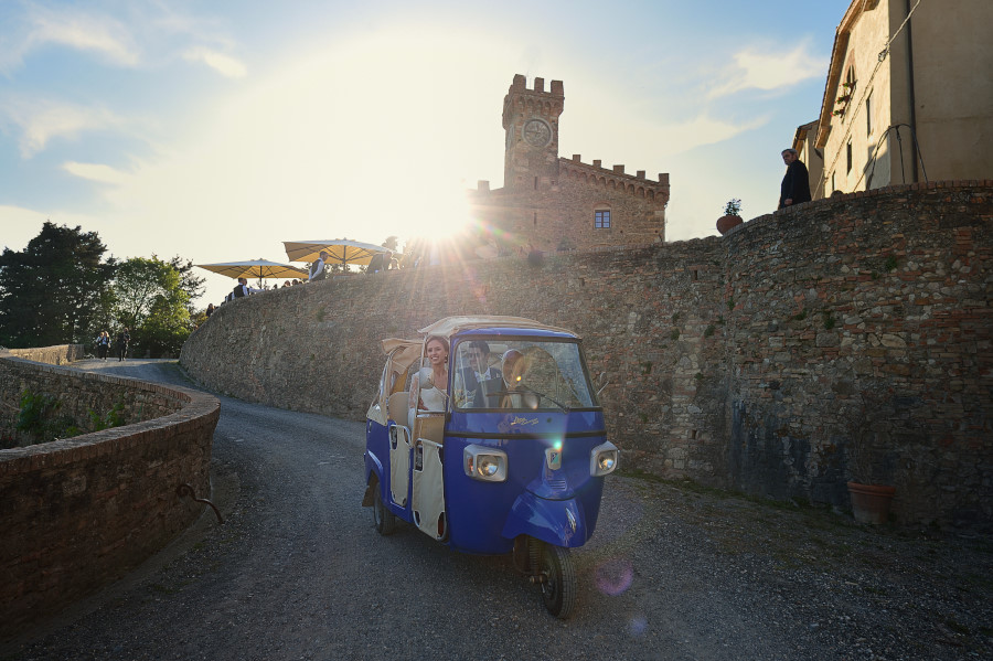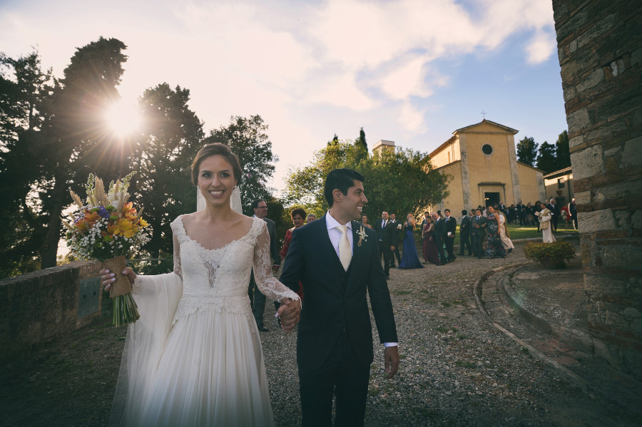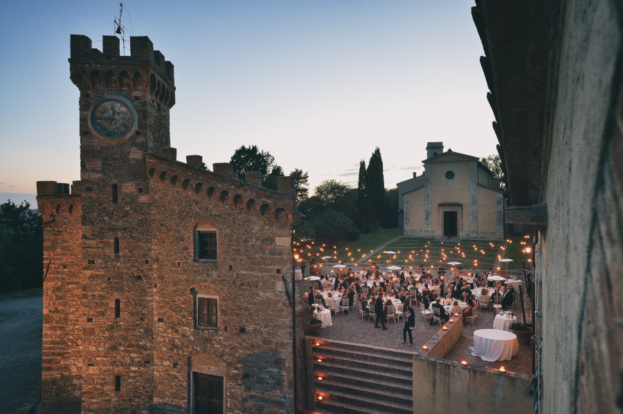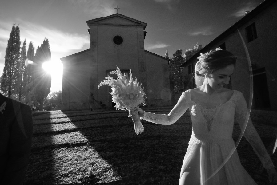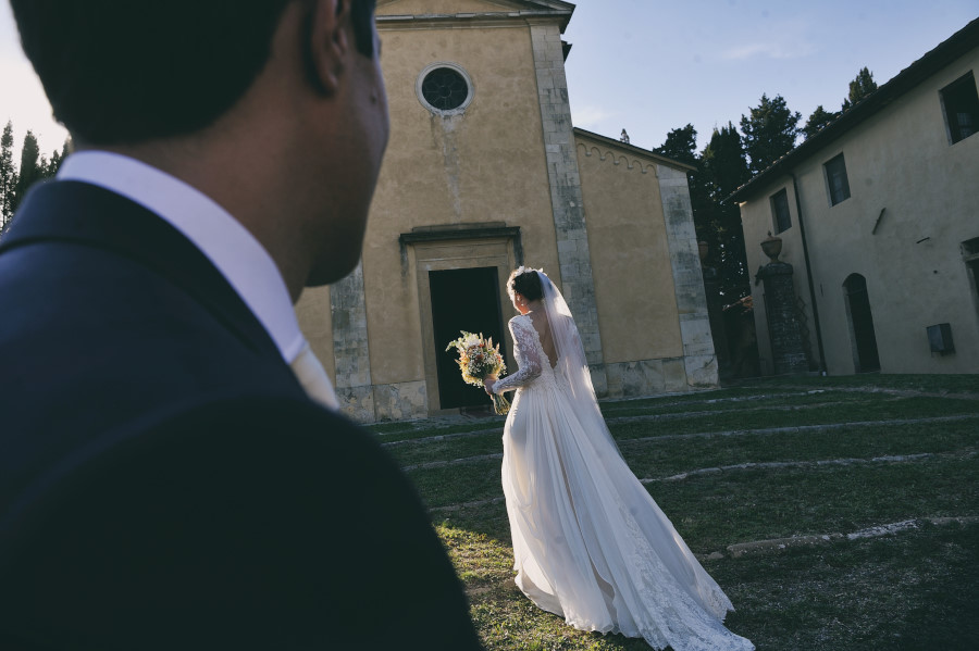 Una delle cose più intelligenti e soprattutto pratiche che ho spesso notato nell’organizzazione del matrimonio (destination wedding) di coppie straniere è quella di trovare un luogo dove far svolgere tutto l’evento. Preparazione, cerimonia e ricevimento. In Toscana, ma un po’ in tutta Italia, ci sono dei luoghi incantevoli dove è possibile concentrare in un unico posto tutto il matrimonio. Spesso sono dei borghi accuratamente ristrutturati, come la Tenuta di Casaglia in provincia di Pisa, che offrono anche l’opportunità agli ospiti di soggiornare. Certamente per il fotografo è molto più pratico, non si deve preoccupare di fare lunghi spostamenti e di trovare il parcheggio (cosa spesso complicata) vicino alla chiesa. E’ indubbiamente molto meglio anche per gli sposi e i loro ospiti. Magari la sera prima del matrimonio possono fare una rehersal dinner (una cena di benvenuto) insieme ai loro amici e parenti, il giorno del matrimonio possono alzarsi con calma e si possono godere il grande giorno senza bisogno di spostamenti continui. Questa cosa dovrebbe essere caldamente consigliata dalle wedding planner che si occupano dell’evento e non solo per il matrimonio di coppie straniere.
