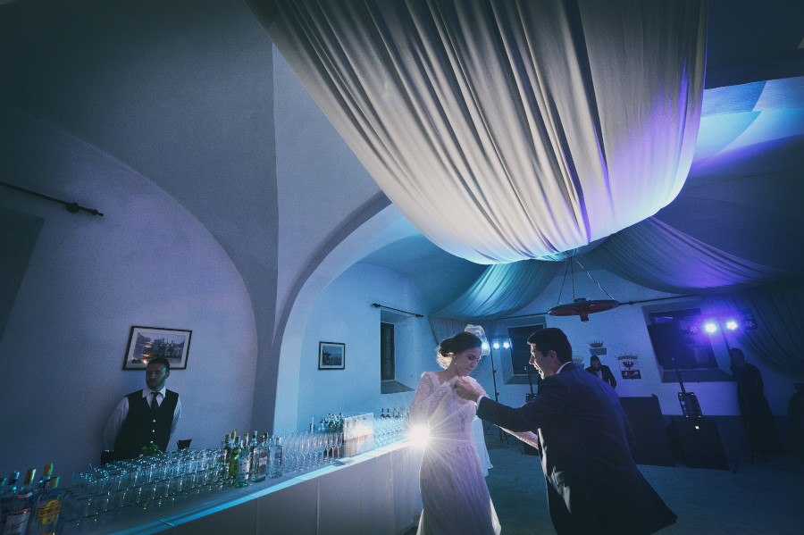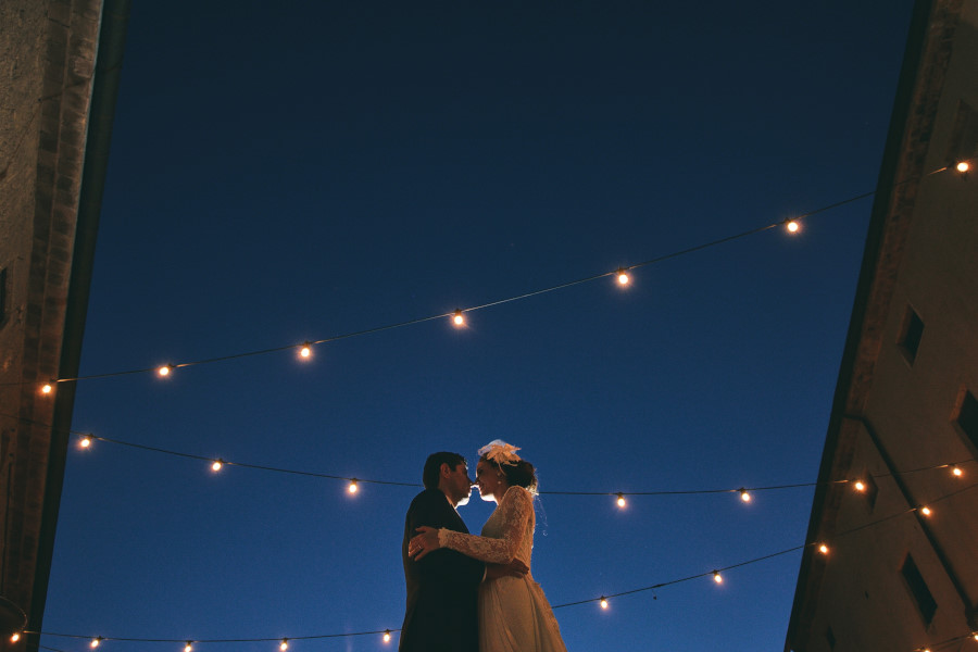 La cena del matrimonio ha avuto inizio all’imbrunire e dopo aver servito i primi piatti ho preso gli sposi per fare qualche fotografia durante l’ora blu (golden hour), un momento veramente magico dove la luce è incredibile. Un momento in cui viene meno il mio stile reportage e foto giornalistico. Una fotografia più statica ma sicuramente suggestiva per gli sposi. Bastano 5 minuti che, nell’economia dell’intero servizio fotografico fatto senza pose, di puro reportage, ci possono anche stare.