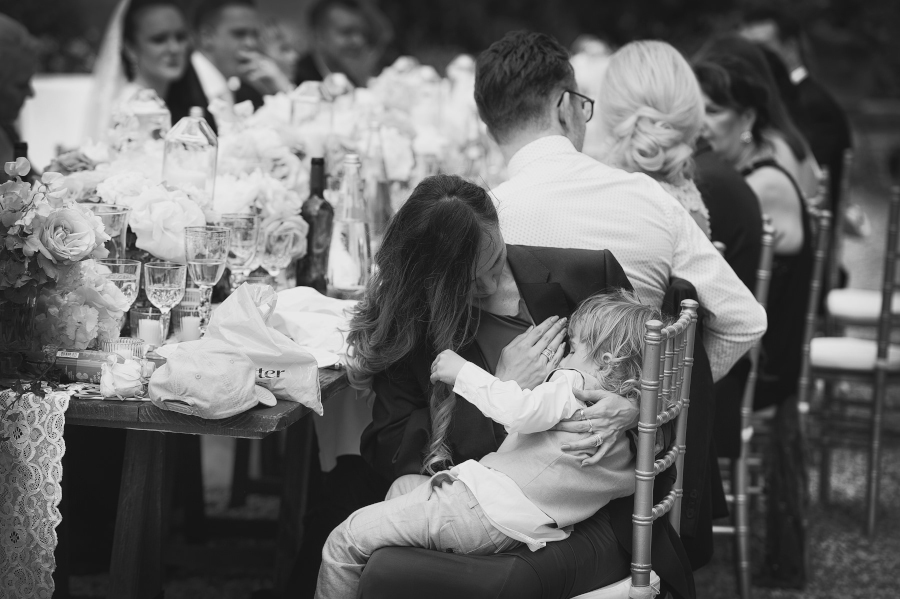 Nel frattempo al Castello venivano serviti gli aperitivi e gli ospiti hanno potuto godersi il tepore del tardo pomeriggio degustando piccoli tranci di pizza e raffinati finger food. Dopo circa 20 minuti, il tempo necessario per la ‘mia’ fotografia di coppia, anche gli sposi hanno raggiunto gli amici. A questo punto ho ripreso a fotografare in modo reportagistico, cercando di raccontare il matrimonio con una fotografia fatta di attimi rubati, di pianti veri, di emozioni e momenti unici.
