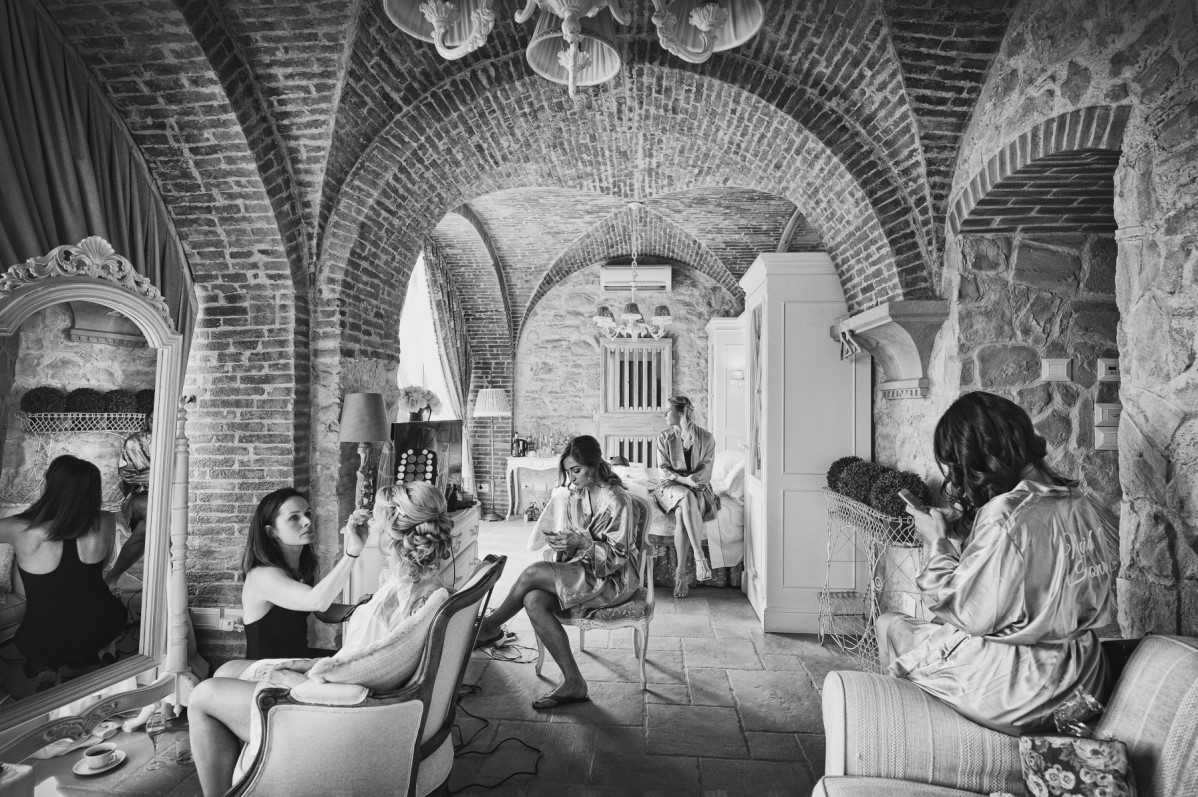 Sono contento quando posso fare la ‘mia’ fotografia perché è quella che ricercano i miei sposi. Riesco così a trasferire nelle immagine che andranno alla coppia anche parte delle mie emozioni, del mio essere più profondo. Io non considero mai gli sposi come dei ‘clienti’ anche se sono consapevole che mi stanno pagando per quello che sto facendo. Io fotografo l’evento cercando di raccontare la loro storia, faccio il reportage di un giorno straordinario. Gli sposi, i loro amici, le loro famiglie tutte queste persone e le loro interazioni, le loro emozioni, le loro gioie diventano parte integrante della storia. La mia fotografia di matrimonio ha questo scopo: far si che nel tempo gli sposi e le persone che avevano invitato possano rivivere quella giornata, possano, da quegli attimi fermati, ritornare a quel giorno, a Villa Le Fontanelle e possano recuperare quelle sensazioni che hanno magari dimenticato.