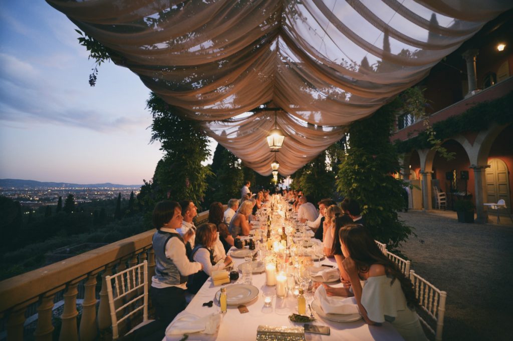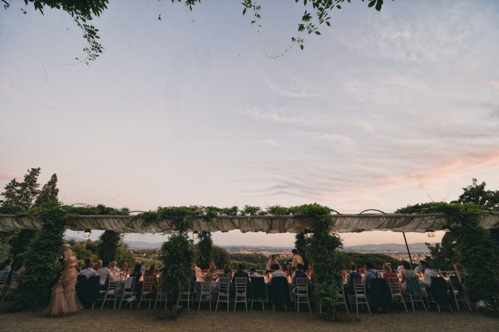 Raffinata location sulle colline toscane per un elegante matrimonio con vista su Firenze