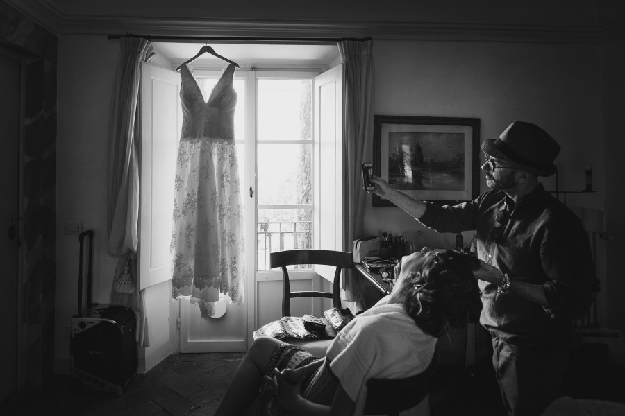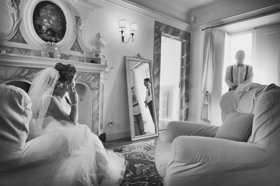 Nadia e Leonardo sono una coppia che viene dal Brasile e ha scelto la Toscana proprio per questa caratteristica: dalla metropoli di San Paolo a quella perla sull’Arno che è Firenze. Entrambi si sono preparati in due diverse camere a Villa Le Piazzole con una splendida vista sul giardino all’italiana. Tutto si è svolta in assoluta tranquillità, ma non per questo non sono mancate forte emozioni. La mamma con gli occhi lucidi che vede la figlia ormai pronta ad uscire con il suo bianco abito da sposa e il padre che abbassa lo sguardo per non iniziare a piangere.