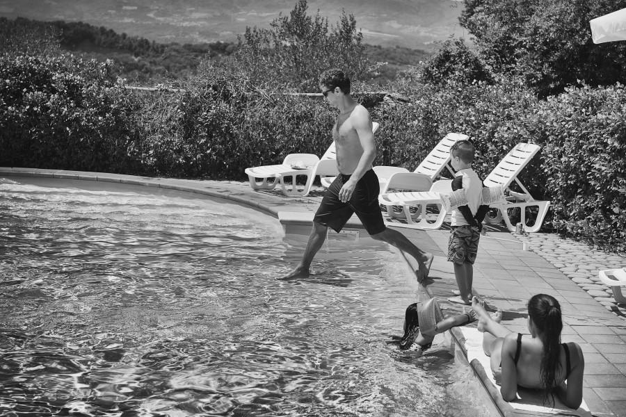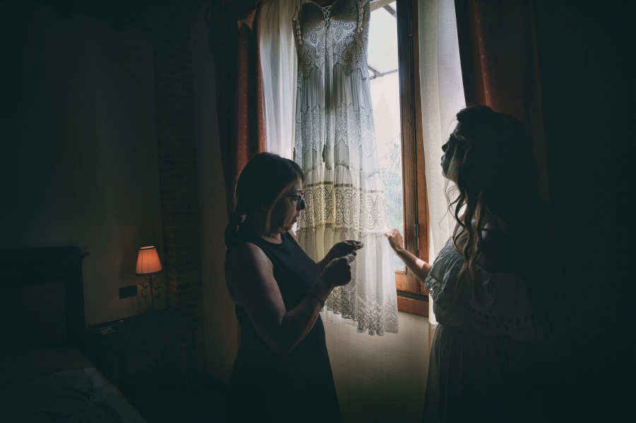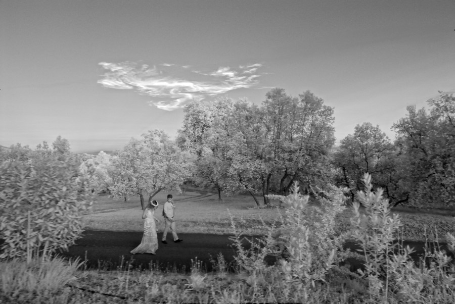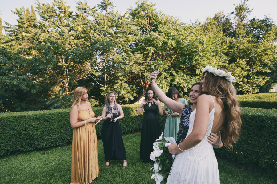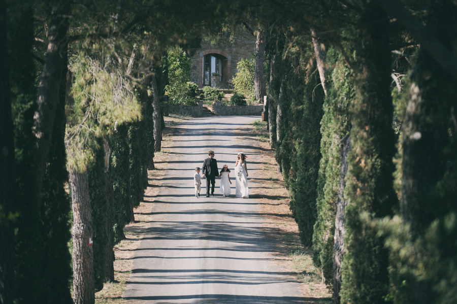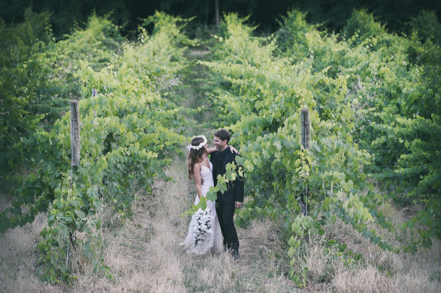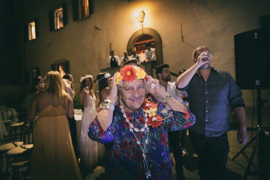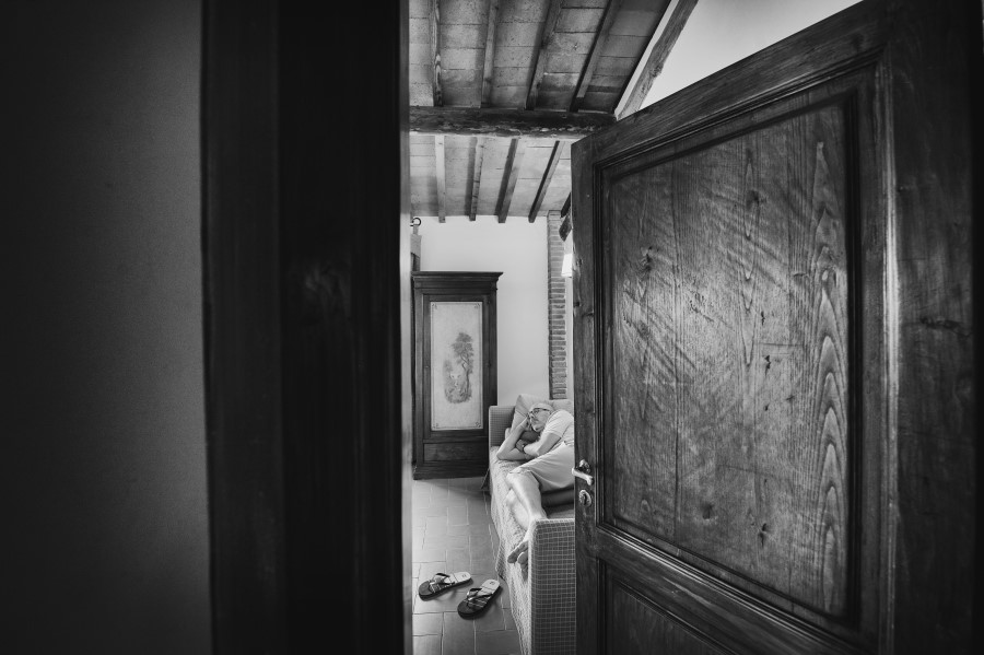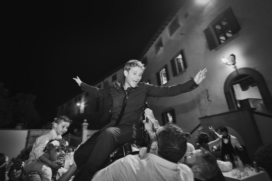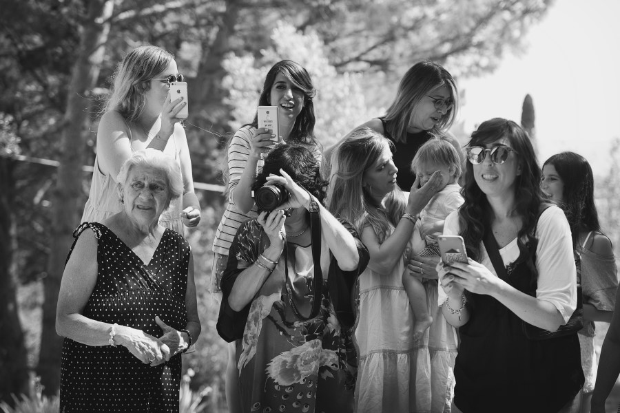 Per la fotografia di coppia ho deciso di aspettare la luce calda del tramonto, mentre ho sfruttato la fotografia all’infrarosso quando invece il sole era più alto e favoriva meglio la sintesi clorofilliana. Abbiamo speso circa 15 minuti di fotografia spontanea in cui gli sposi si sono spostati all’interno del podere Poggitazzi. Come fotografo del matrimonio ho cercato di sfruttare il controluce visto che il sole tramontava proprio sulla valle in fronte alla villa. Per il resto della giornata ho sempre lavorato nel mio stile reportagistico cercando di cogliere degli attimi e dei momenti.  Mi sono mosso sempre in modo molto discreto senza intervenire sulla scena in modo da cogliere delle emozioni vere e spontanee sia degli sposi che degli invitati.