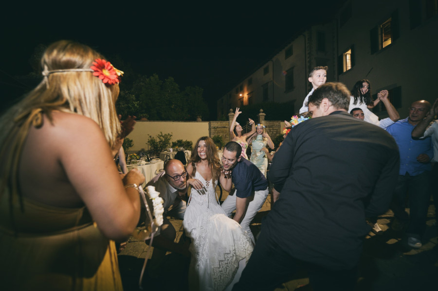 Il matrimonio si è concluso a notte fonda con i balli che nel matrimonio ebraico coinvolgono tutti gli invitati dai bambini alle nonne. All’inizio tutti si sono scatenati in danze tipiche per poi continuare la serata con il dj che passava musica internazionale.