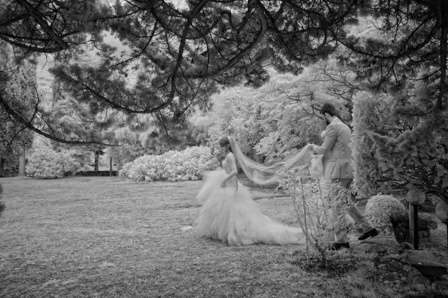 Relaxed atmosphere at the beginning and full of energy at the end. Many friends from different countries had fun celebrating the wedding of this nice couple. The entire wedding – the preparation of the bride and groom, the ceremony and the party – took place in Villa Pitiana, a splendid location immersed in the Tuscan countryside. For the couple photography we chose the beautiful park of Villa Pitiana that offered many different spots in which to move. The green and the beautiful cloudy sky favored the use of infrared shots (to know more about infrared photography click here). All the photographic service has been a mix of candid, photo journalistic and spontaneous shots with few posed pictures.