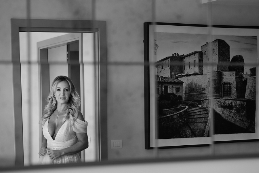 Carla and Aristeu from Brasil to Castelfalfi, one hour drive from Florence, in Tuscany, to celebrate their wedding. They have chosen this amazing location for their venue. She started to get ready in the luxury Toscana Resort Castelfalfi, as her husband to be, even if in different rooms. Sunny and warmy day, they have been so lucky. This conditions have permitted to take pictures with natural light in a ‘cinema’ atmosphere. Using color and black and white (more during getting ready). A mix of candid, spontaneous and posed shots have completed the photographic service of their wedding. Here a short selection of the story of the Big Day.