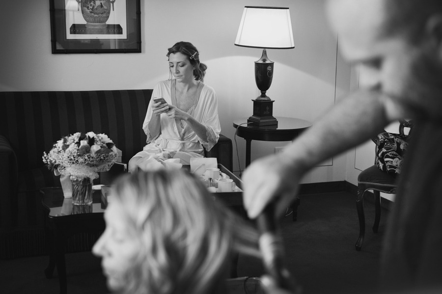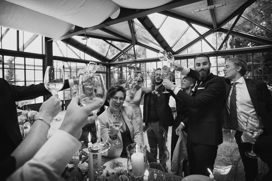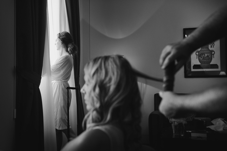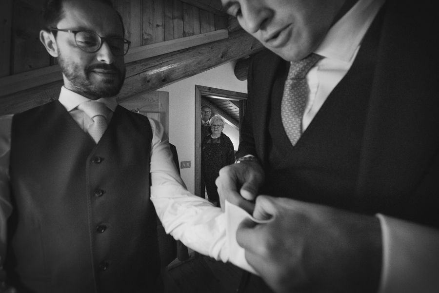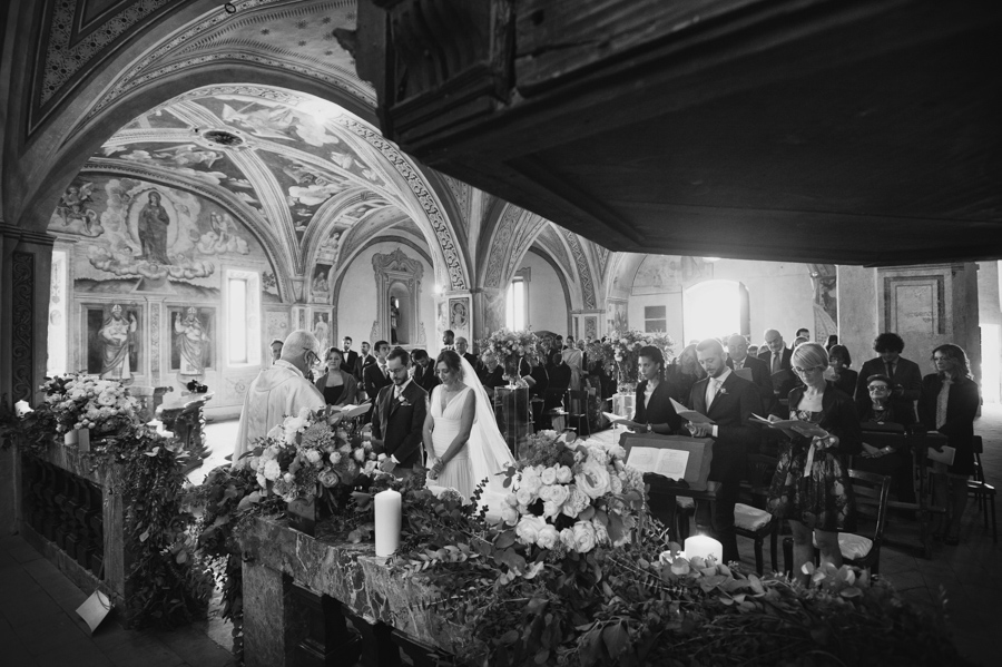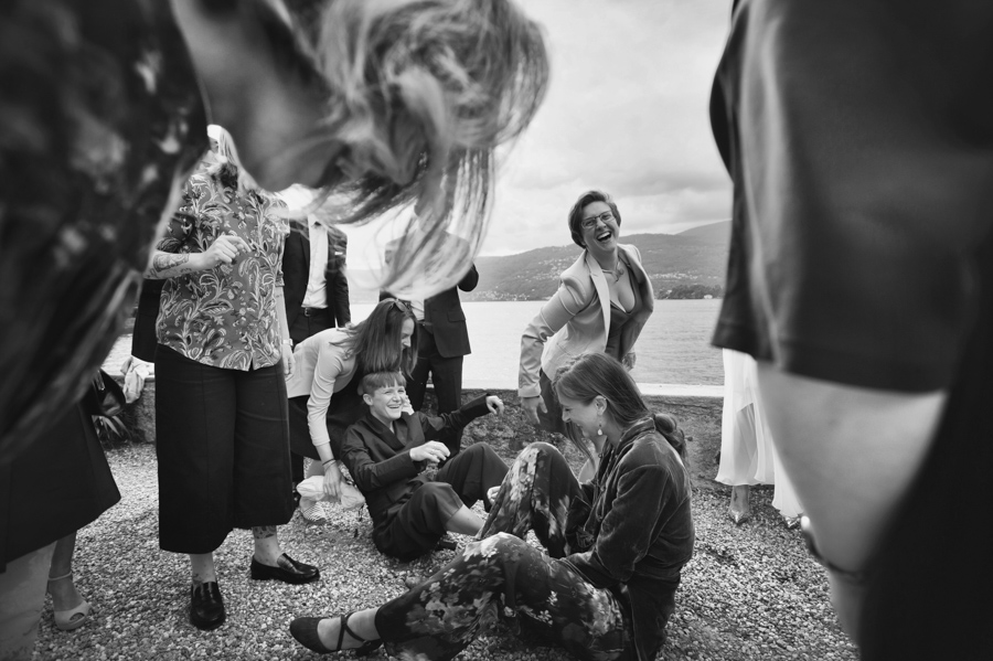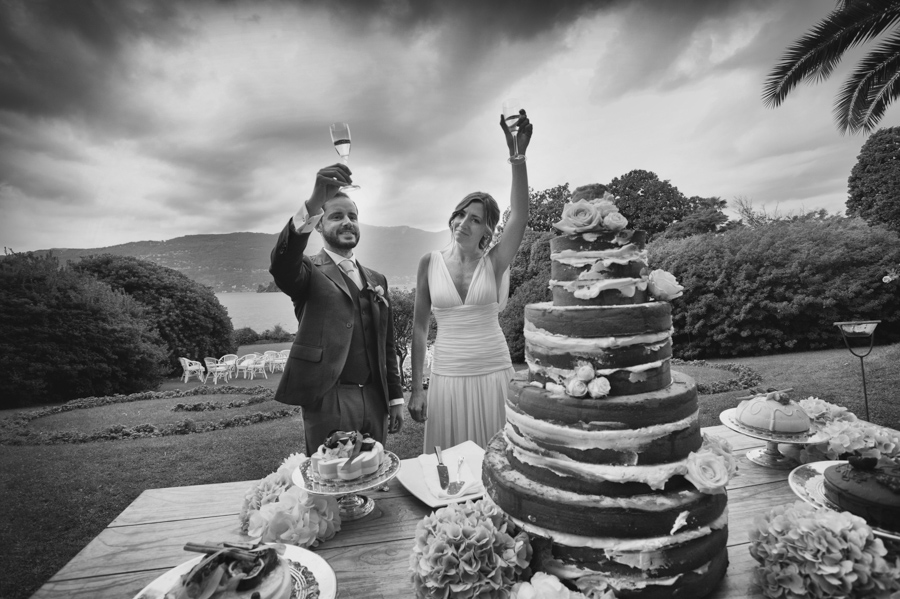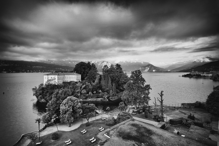 La sposa con sua madre si è preparata in una bellissima suite dell’albergo Majestic sempre vicino a Verbania per poi raggiungere la Chiesa Vecchia dedicata Santa Maria in quel di Belgirate arroccata su una piccola collina con una splendida vista sul Lago Maggiore. Dopo la cerimonia una barca ha portato gli sposi in Villa Rusconi Clerici a Pallanza mentre gli invitati la raggiungevano via terra. Una curiosità sulla barca in legno: era la Rosamund la stessa usata per il matrimonio di Beatrice Borromeo e Pierre Casiraghi. Il tempo è stato clemente, anzi il cielo nuvoloso ha contribuito a rendere ancora più interessante la luce. Come fotografo mi sono particolarmente divertito a sfruttare i giochi di chiaro scuro tra il nero delle nuvole e il bianco del sole che ogni tanto faceva capolino.