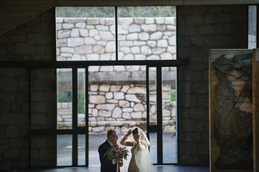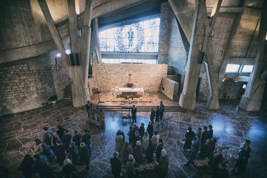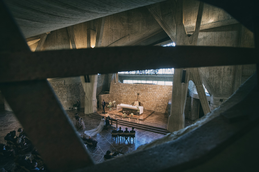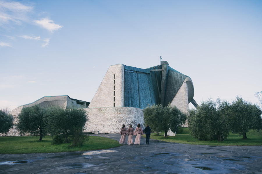 Quando è un’architetta a sposarsi e decide di farsi celebrare il matrimonio nella chiesa che è stata argomento della sua tesi di laurea – della quale è ‘innamorata’ quasi quanto il suo futuro marito – il compito del fotografo diventa più delicato. Devi fotografare gli sposi ovviamente, ma devi anche raccontare il luogo con un occhio e un taglio particolare. La chiesa è San Giovanni Battista alle porte di Firenze, nota più comunemente con il nome di Chiesa dell’Autostrada. Non mi addentro in considerazioni sull’architettura dell’edificio anche perché rischierei di fare delle gaffes uniche, ma riporto solo qualche nota sulla costruzione trovata in rete.
