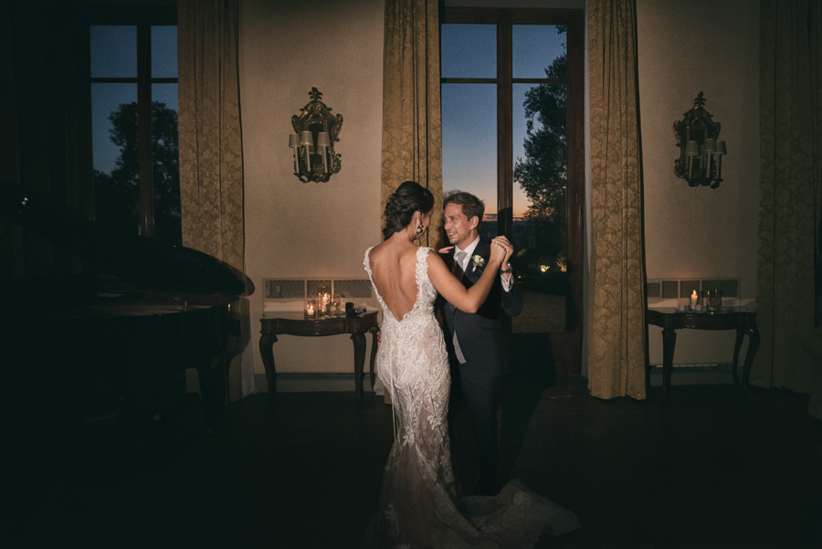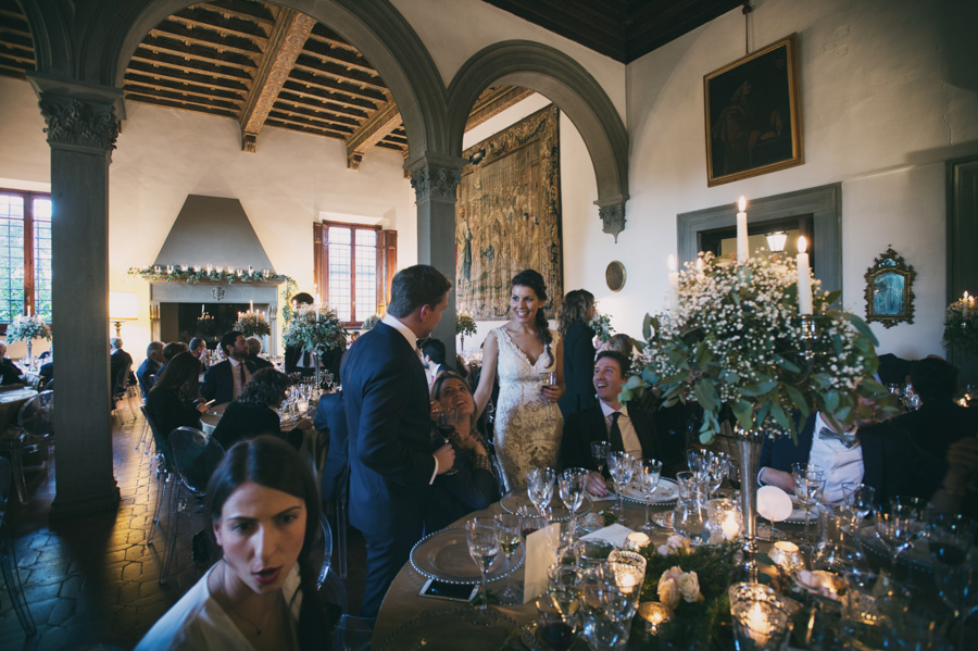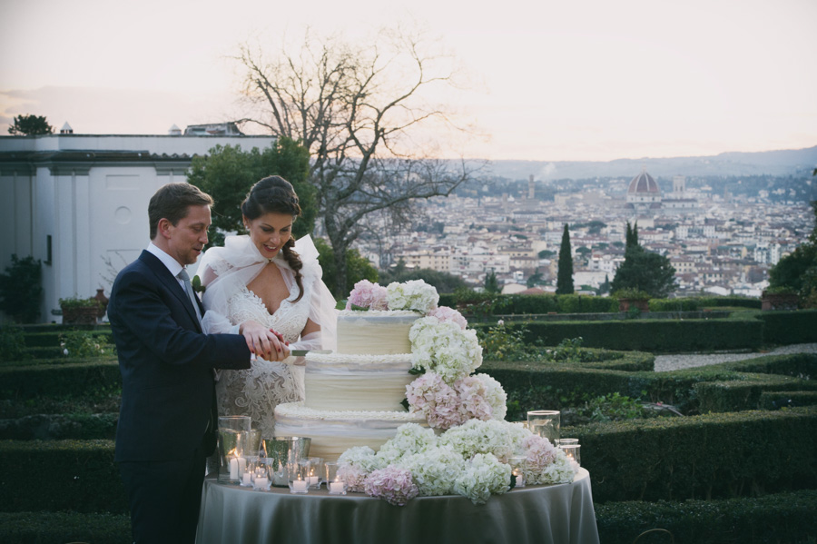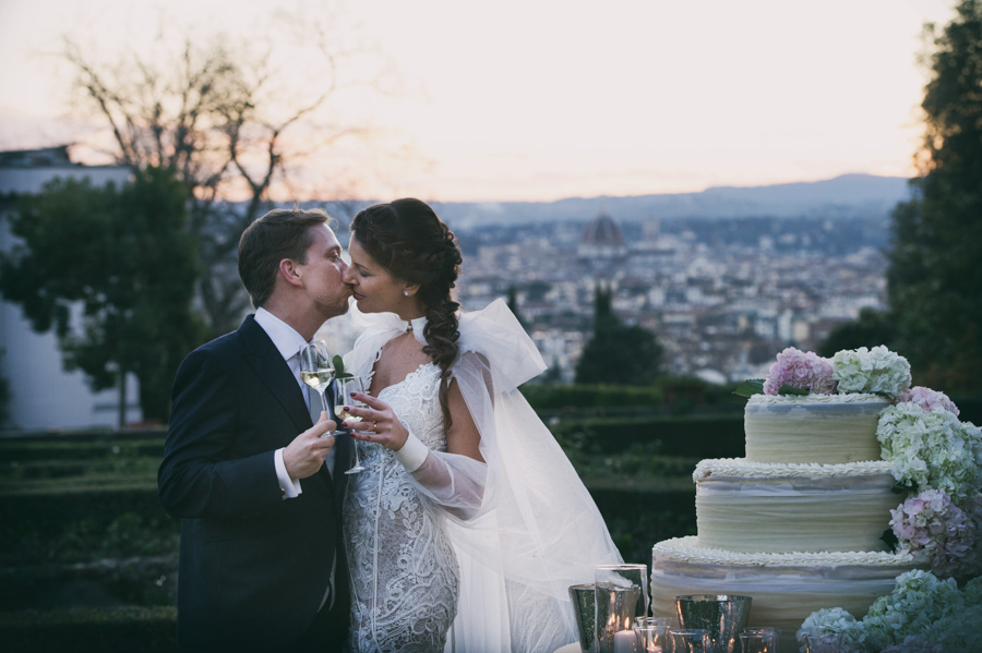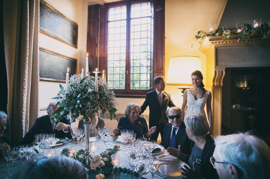 Oltre alla scelta della chiesa anche tutto il resto è stato curato con estrema attenzione. I fiori, minimal, in modo da non perdersi nell’ampiezza della struttura. La location, Villa Il Garofalo, che fu antica dimora della famiglia Alighieri con una delle viste più belle sulla città di Firenze. Le bomboniere fatte fare apposta da un eclettico artista. Beh, mi ha confessato la sposa, che anche il fotografo è stato selezionato con la dovuta pignoleria. Insomma niente è stato lasciato al caso.