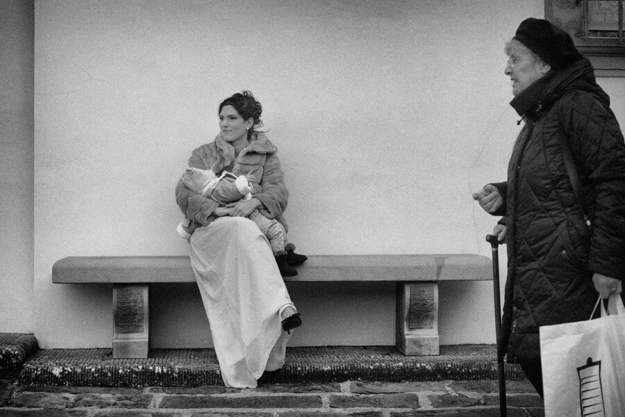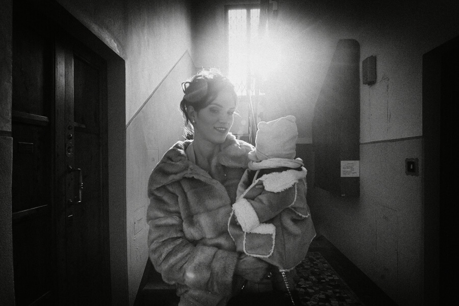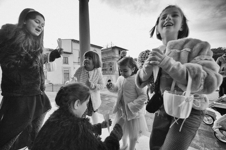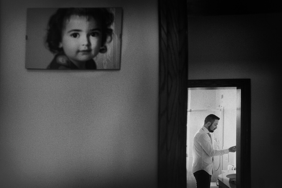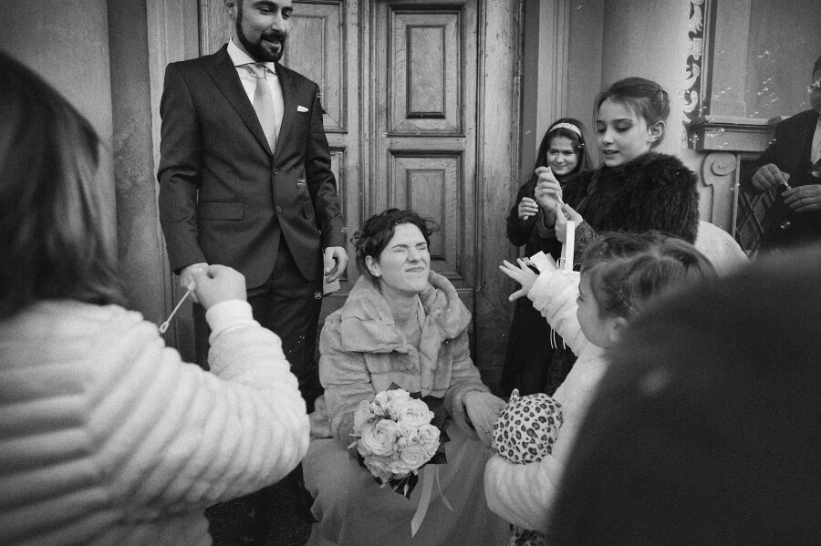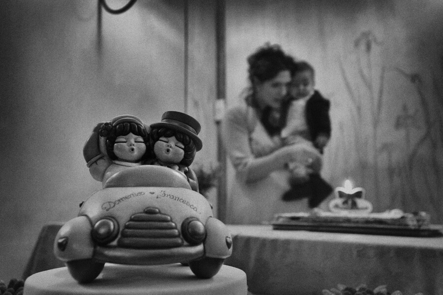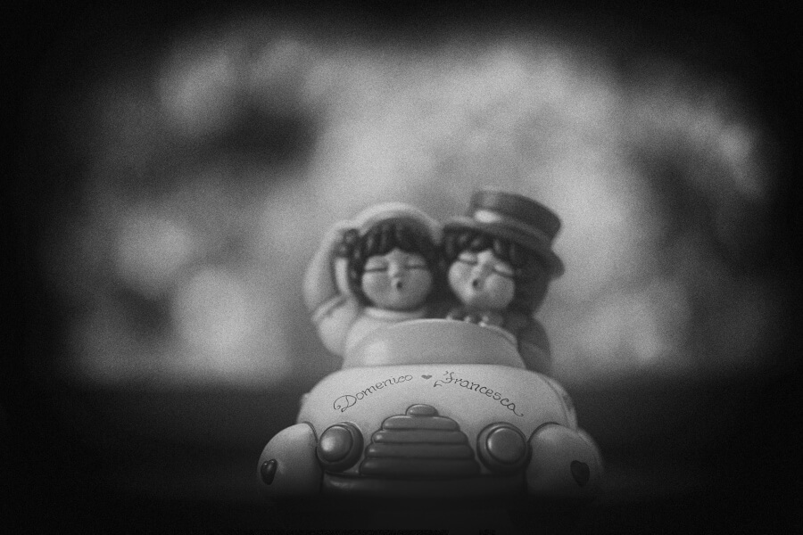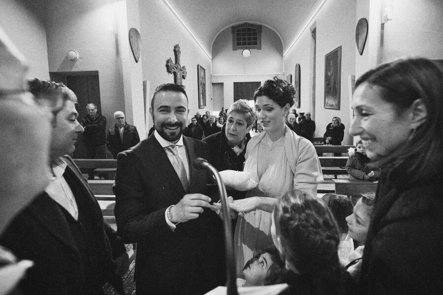Voglio spendere giusto due parole proprio per la scelta della lavorazione delle fotografie del matrimonio. Ho voluto, come fotografo, cercare di togliere il tempo allo scatto, idea su cui sto lavorando da qualche tempo. Così ne è uscito fuori un bianco e nero non violento con dei toni scuri mai troppo chiusi o contrastati. Una leggera grana proprio per accentuare questo senso di sospensione temporale e dare anche un tocco di informalità in sintonia con la scelta degli sposi.