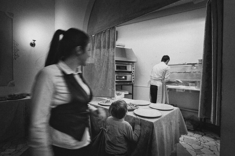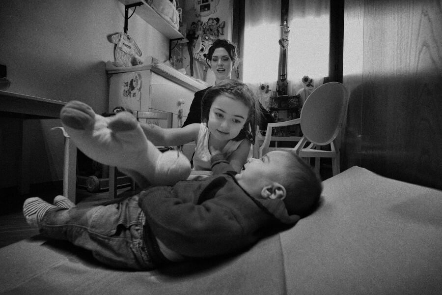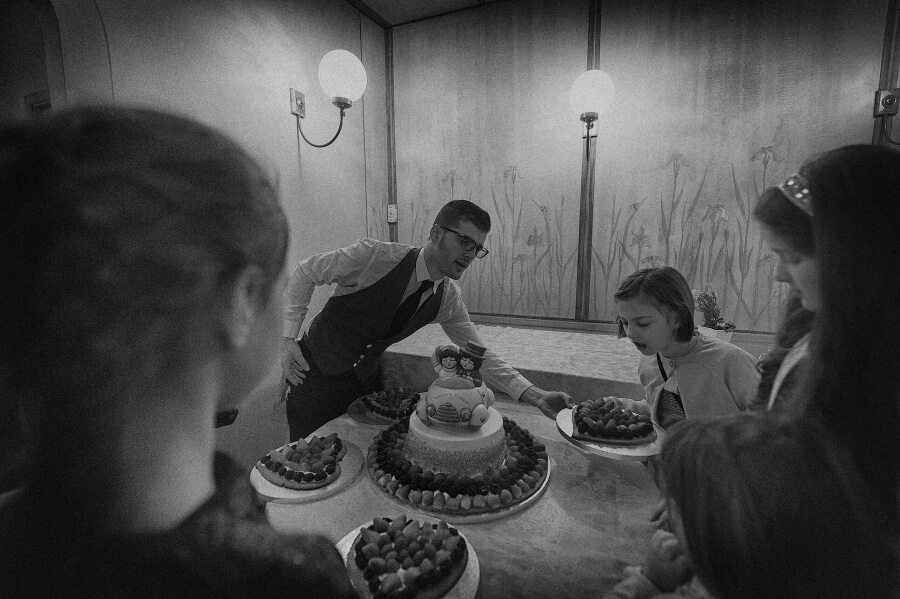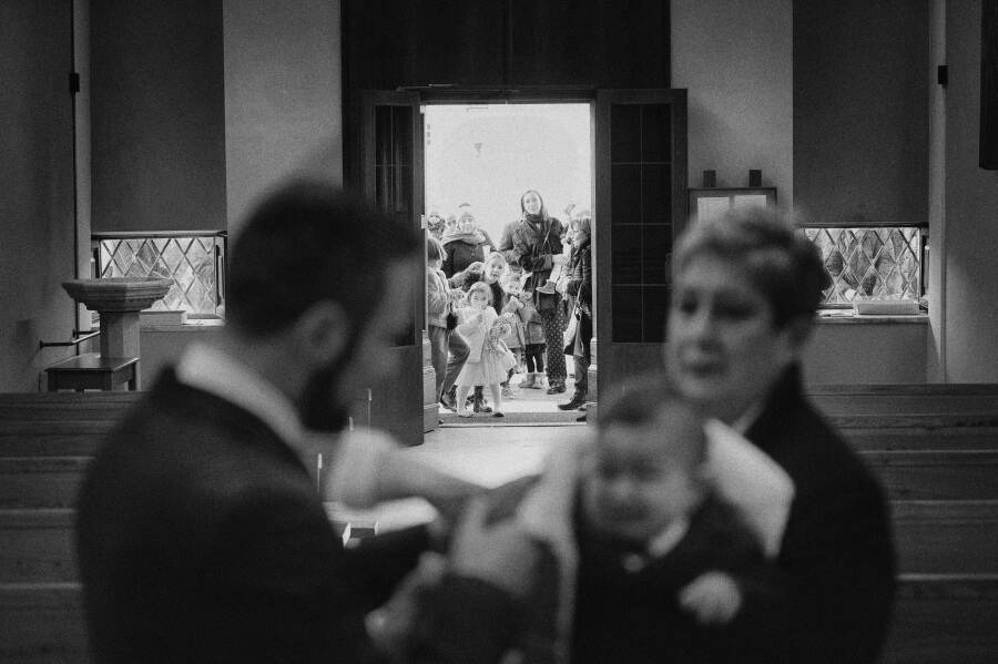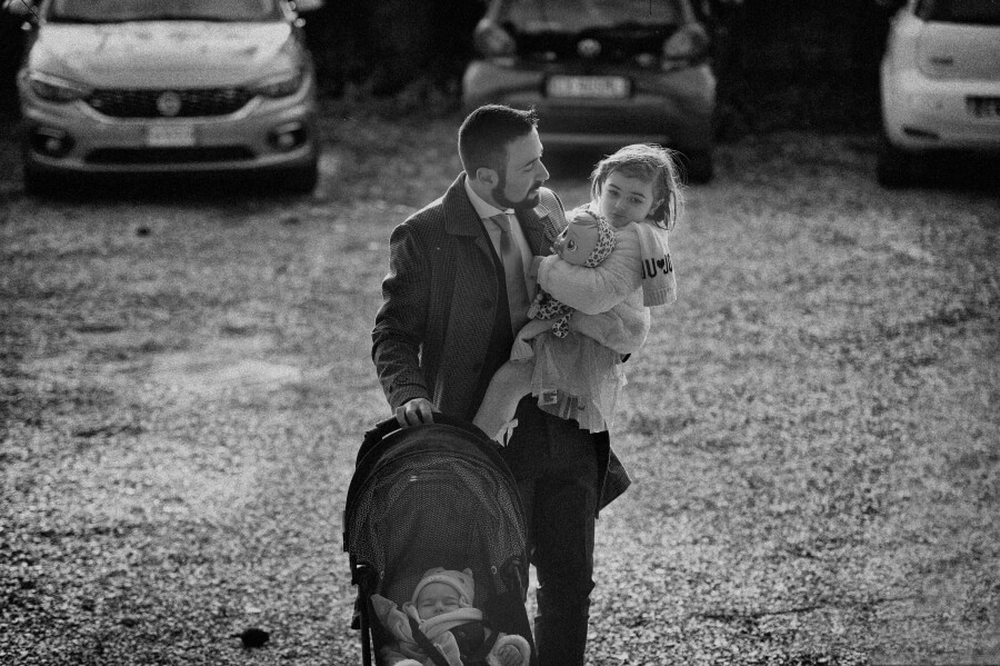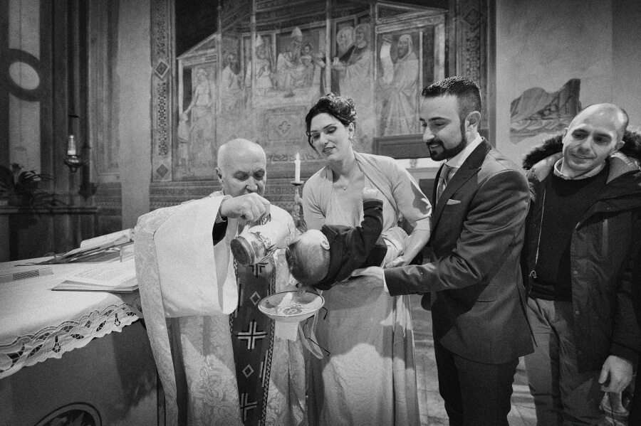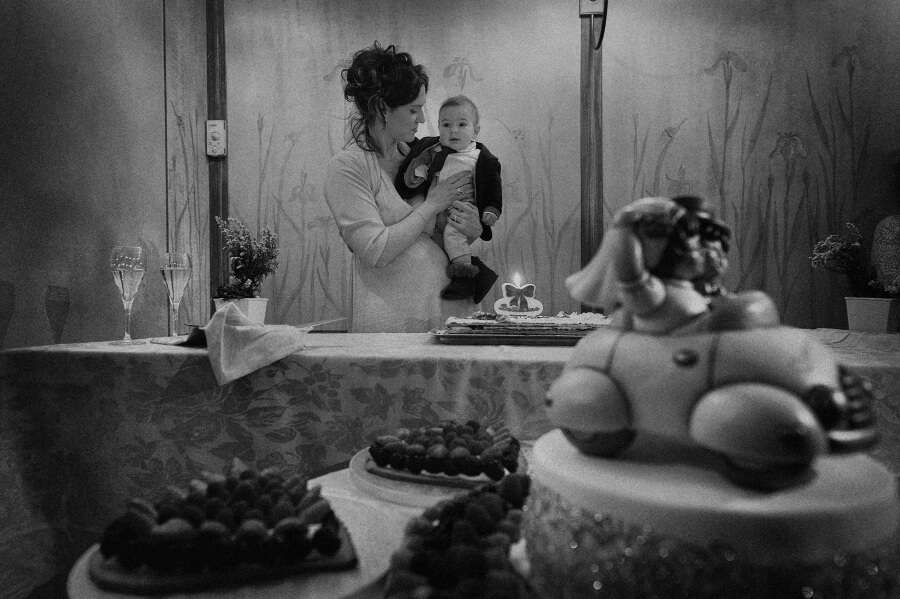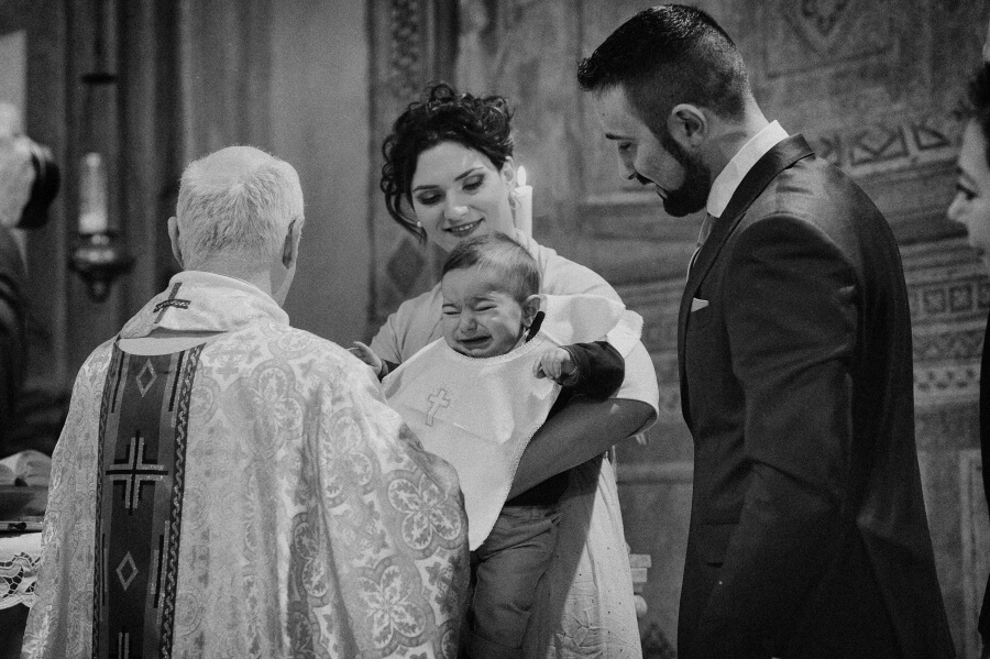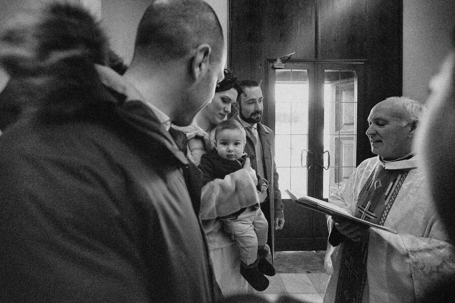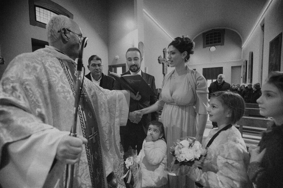 Gli ospiti erano stati invitati per celebrare il battesimo del ‘nuovo arrivato’. Qualcosa di veloce ed informale in un pomeriggio invernale, una sorta di merenda/cena tra un gruppo ristretto di amici. E invece all’insaputa di tutti (io come fotografo lo sapevo già da alcuni mesi) hanno deciso di unire le due cose e di celebrare anche il loro matrimonio.