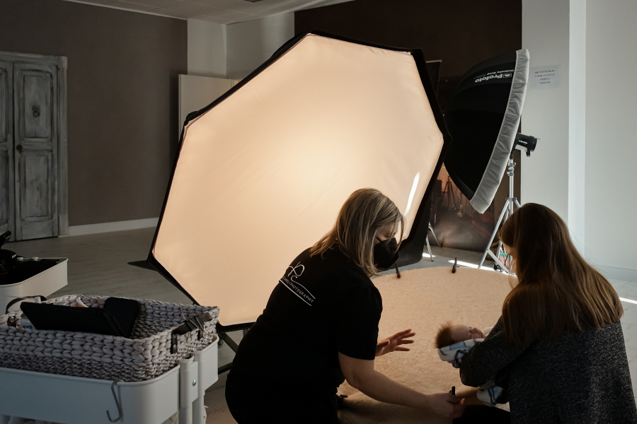 Nel corso di questi due giorni mi sono reso conto di quanta capacità, di quanta tecnica, di quanta passione, di quanta professionalità c’è dietro a uno scatto, soltanto all’apparenza, semplice da realizzare. Il controllo della luce, elemento principe di ogni scatto. Il bilanciamento tra luce naturale e sfondi. Una gestione corretta – grazie all’alta qualità delle attrezzature Profoto – della luce flash smorzata, nel modo adatto allo scatto, da grandi bank dalle forme più varie. Gli abiti e gli accessori che trasmettono il mood, ricercato e voluto, agli occhi del cliente. Una post produzione atta a enfatizzare i soggetti e a correggerne i difetti. Queste sono solo una parte delle competenze che un fotografo deve possedere. Ma la cosa che ritengo più importante è il ‘come’ relazionarsi con la coppia che, nel caso di un new born ad esempio, affida nelle mani del fotografo il loro bambino di pochi giorni denotando una fiducia incredibile in colui che scatta. Una fiducia che nasce dalla sicurezza ed esperienza trasmessa dal fotografo per come si muove sul set.