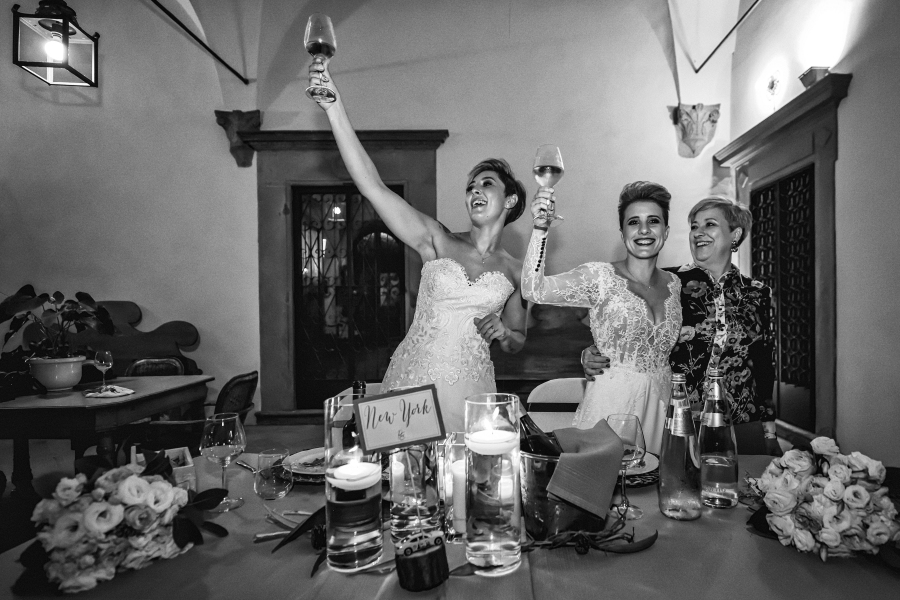 Sono passati meno di due anni da quando Elena e Rachele si sono sposate. Una bella storia d’amore che le ha portate a ufficializzare la loro unione nel Comune di Fiesole davanti al Sindaco della città, Anna Ravoni. Quel giorno seguì una bellissima festa di nozze a Villa Il Rinuccino dove, tra musica e canti, si andò avanti per gran parte della notte.
