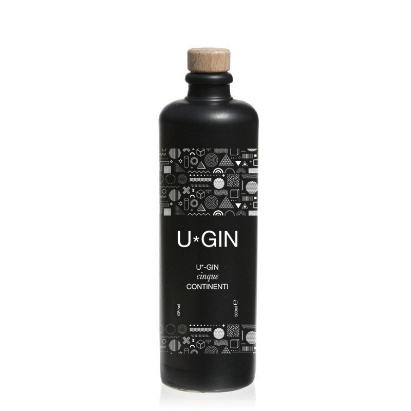 la pronuncia inglese di U-Gin è come il nome del grande fotografo statunitense, Eugene Smith, la cui fotografia è caratterizzata da un bianco e nero profondo ed intenso. La bottiglia è in ceramica nera con le scritte serigrafate in bianco proprio a sottolineare questa relazione. Le botaniche provengono dai 5 continenti, un modo di legare, con un filo immaginario, tutto il mondo così come fa la fotografia, da molti considerata un linguaggio universale. Il metodo di distillazione è il classico London Dry.