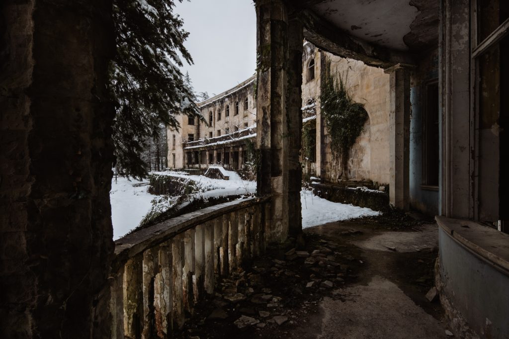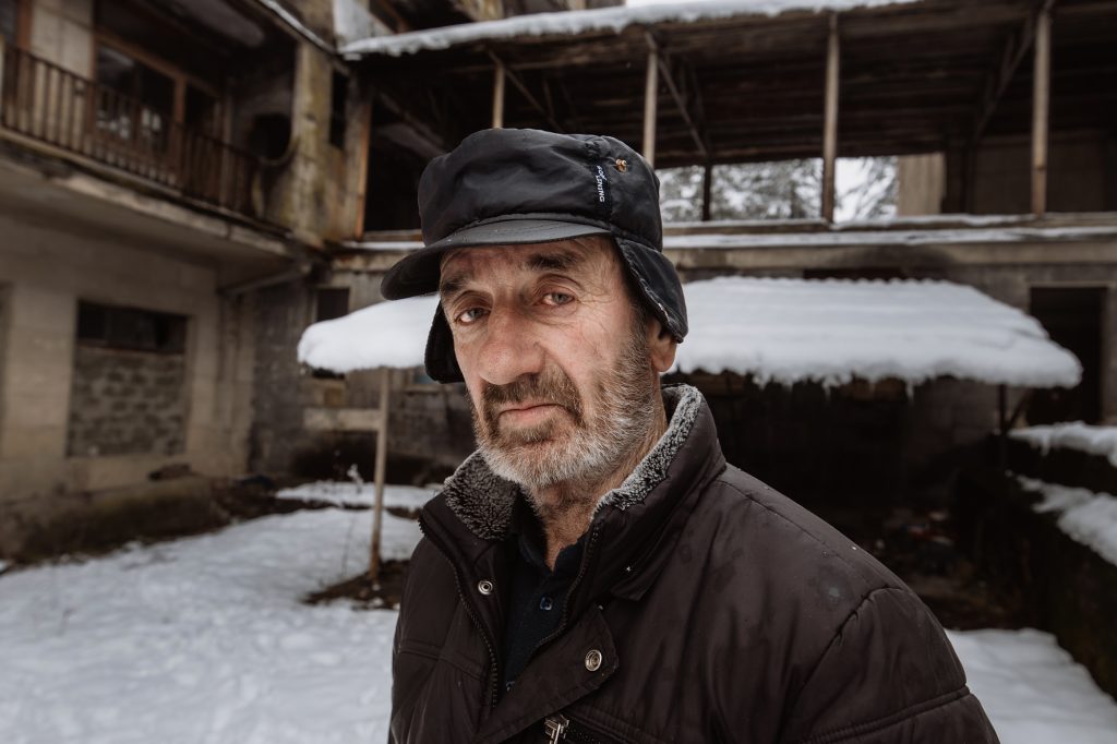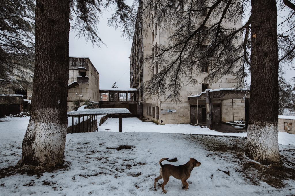 In parte vittime delle persecuzioni attuate dagli abcasi, in parte profughi di fronte al clima di violenza e ai massacri – riconosciuti ufficialmente dalla comunità internazionale – oltre 200.000 georgiani furono quindi costretti ad abbandonare le loro abitazioni e a intraprendere un lungo viaggio attraverso le montagne caucasiche. Molti di loro, da ormai trent’anni, si sono stabiliti a Tskaltubo, la città georgiana un tempo affollata di oligarghi sovietici, Lenin su tutti, che svernavano nei sontuosi ‘sanatori’ cittadini tra massaggi e trattamenti terapeutici grazie alle proprietà curative delle acque termali ricche di radon e azoto.